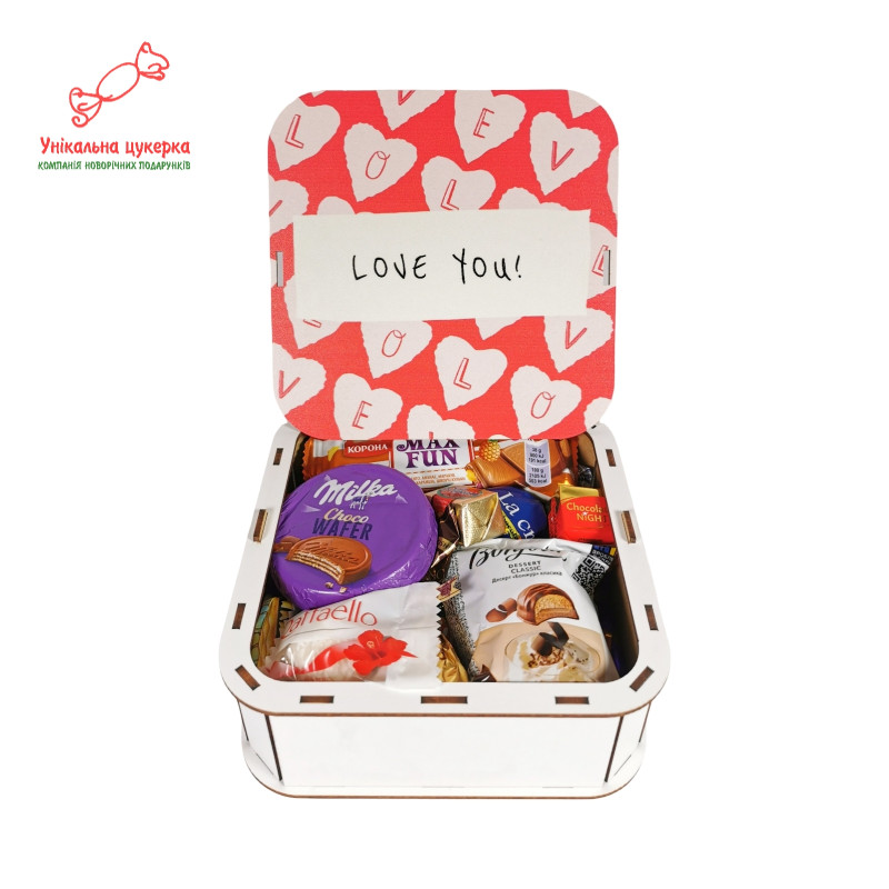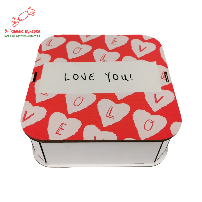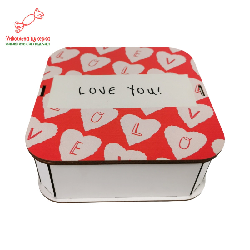 "Love you" Дерев'яний бокс з солодощами №105/01, 380 г (15х15х5см)