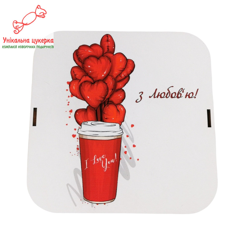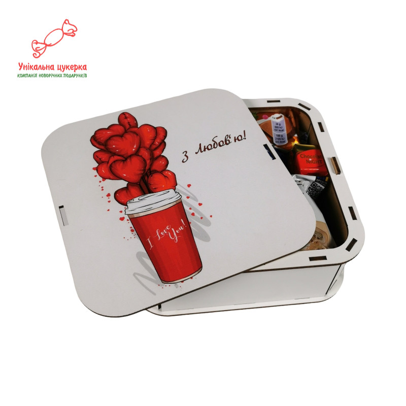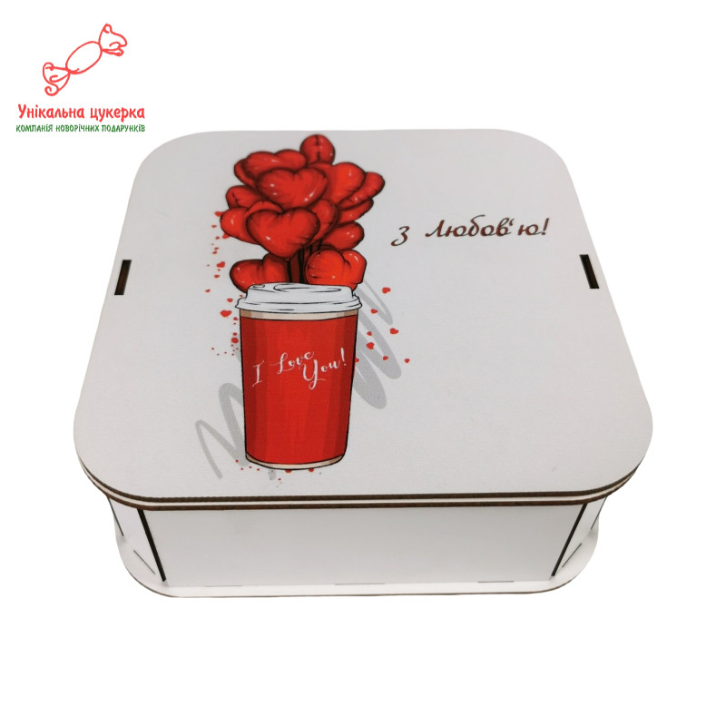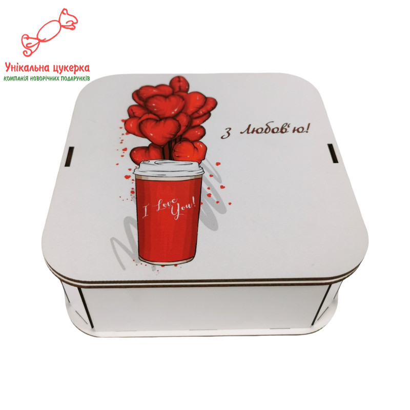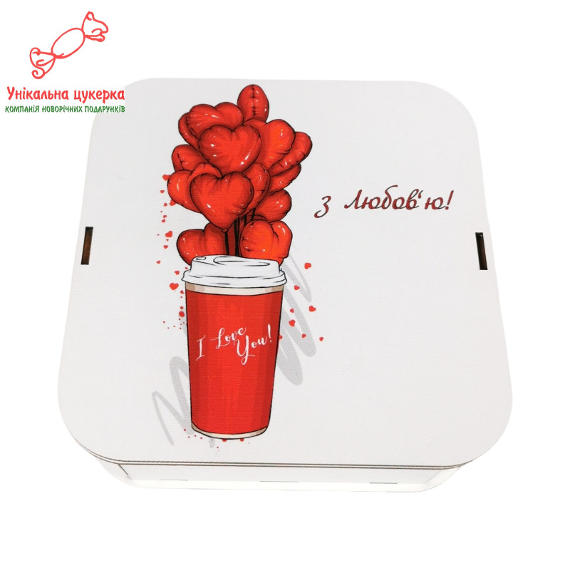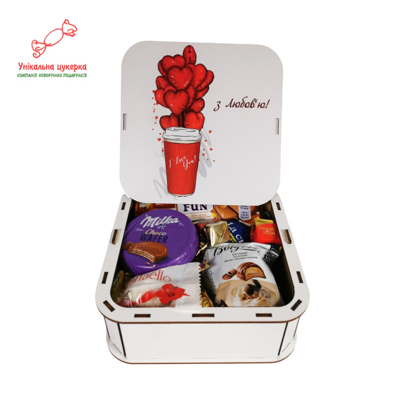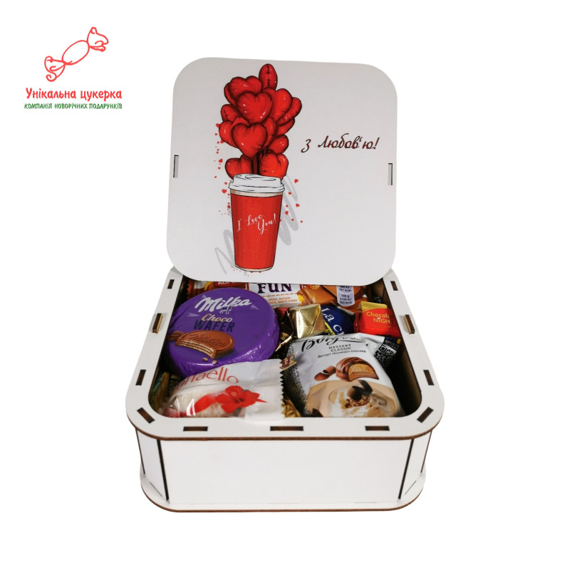"З любов`ю" Дерев'яний бокс з солодощами №105/02, 380 г (15х15х5см)