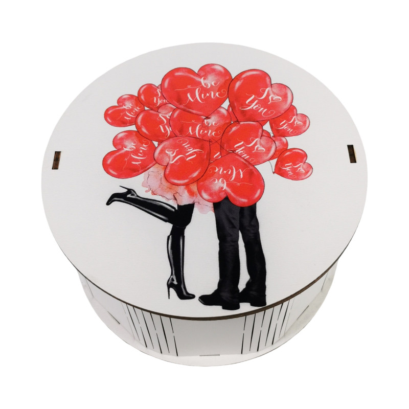 "Букет сердечок" Дерев'яний бокс з солодощамиі №102/10, 515 г (15х15х7 см)