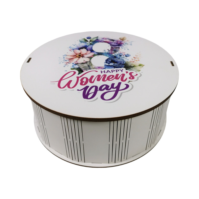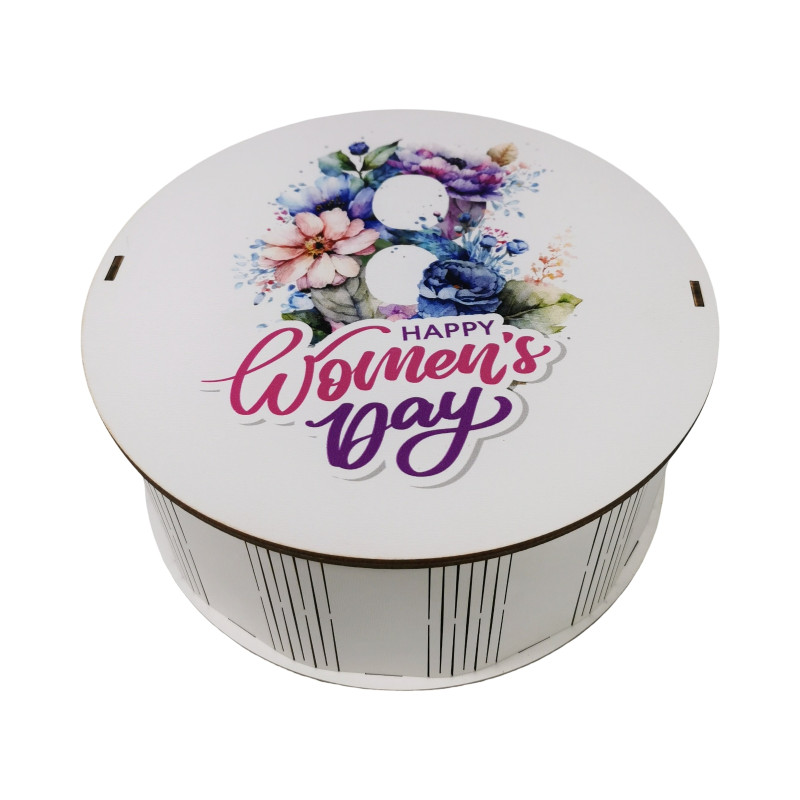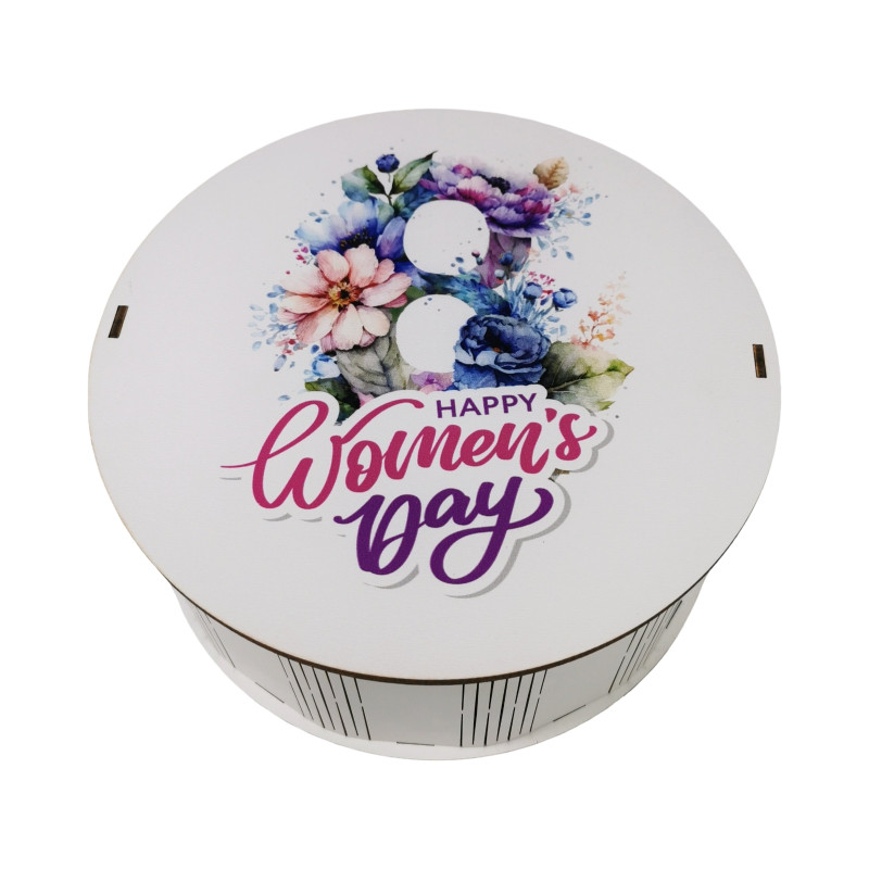 "Happy women`s day" Дерев'яний бокс з солодощами №101/69, 1 кг (21х21х9 см)
