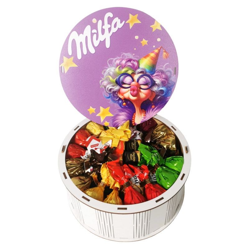 "MILFA" Дерев'яний бокс з солодощами №101/75 , 1 кг (21х21х9 см)
