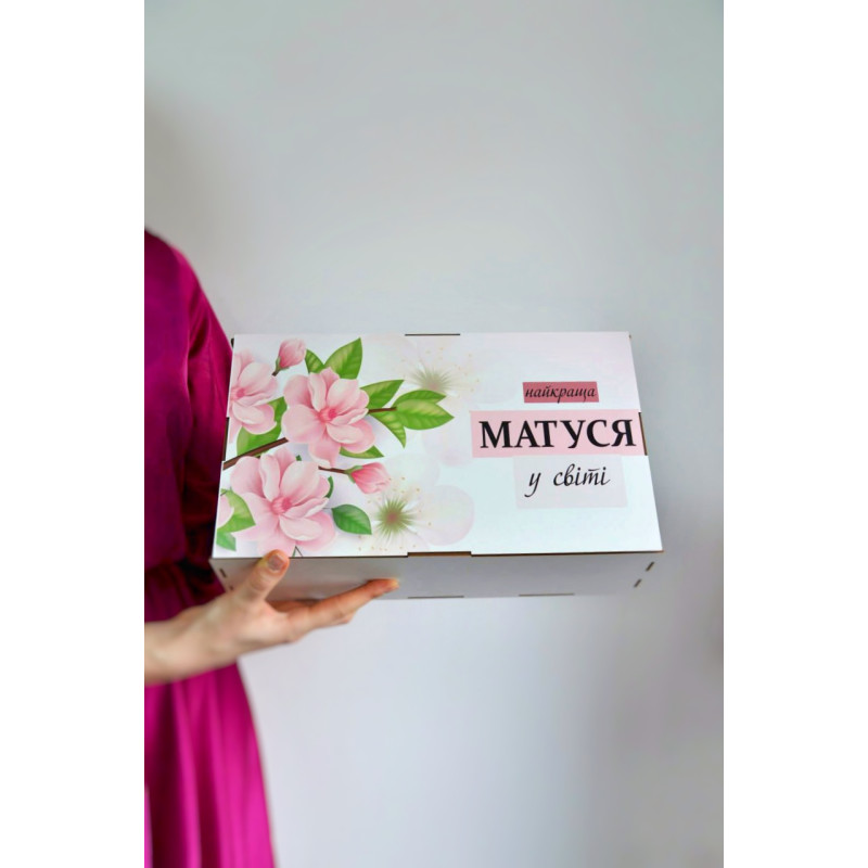 Подарунковий набір солодощів у дерев’яній коробці з квітковим принтом та написом «Найкраща матуся у світі» за вигідною ціною. Чудовий солодкий подарунок для найдорожчих матусь прикрасить будь-яке свято – день народження, іменини, день матері, професійне свято. Широкий асортимент свіжих цукерок відомих виробників добавлять солодких барв до свята.