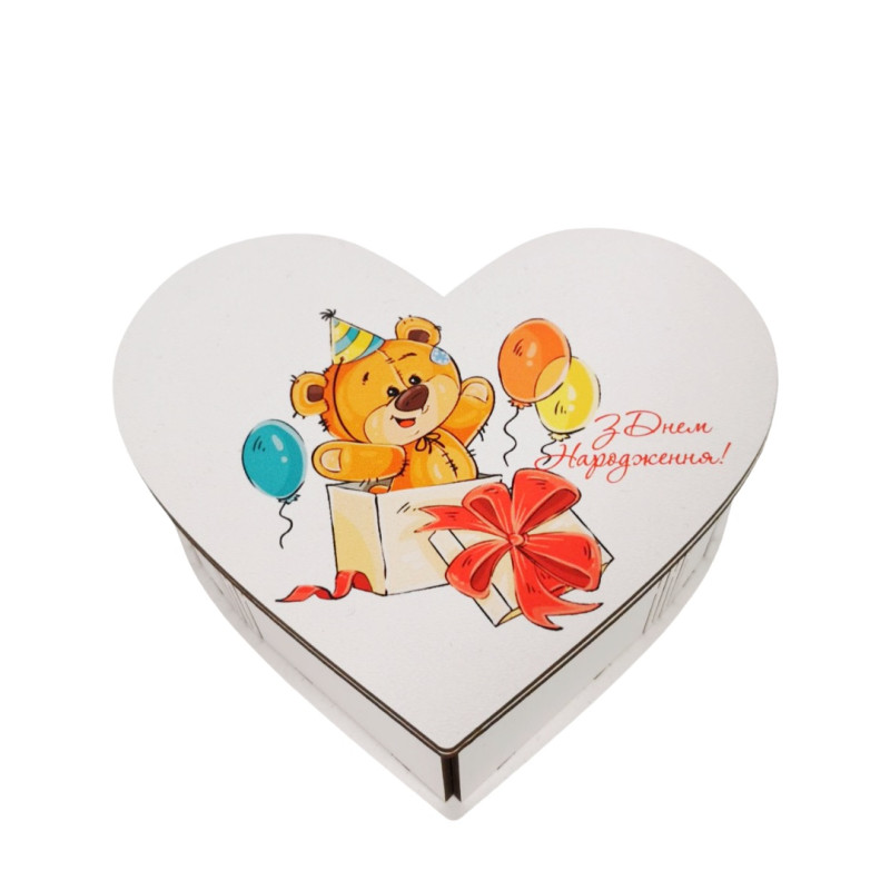 Оригінальний солодкий подарунок в коробочці у вигляді серця з принтом ведмедика з квітами стане чудовим подарунком на День народження для діток. Широкий асортимент свіжих солодощів відомих виробників – шоколадні цукерки, печиво, вафельки, желейні цукерки, яйце Кінер сюрприз, драже - добавлять солодких барв до свята. Подарунковий набір солодощів у дерев’яній коробці за вигідною ціною.