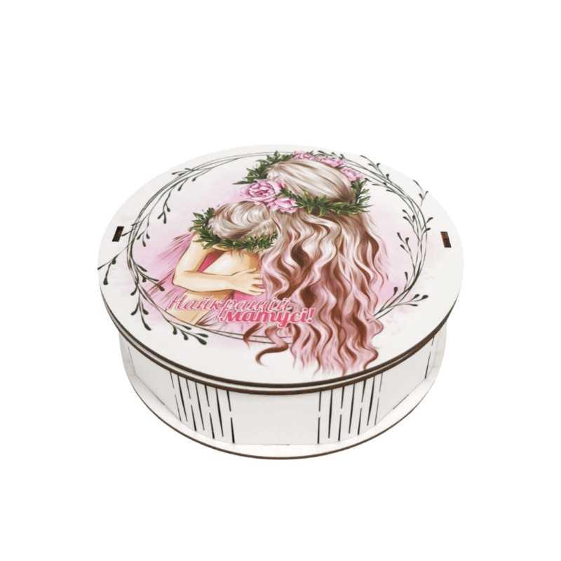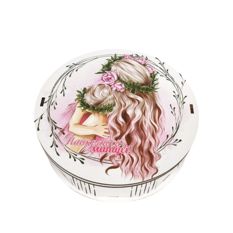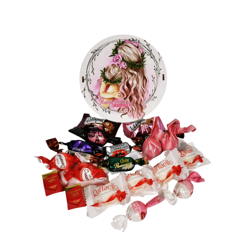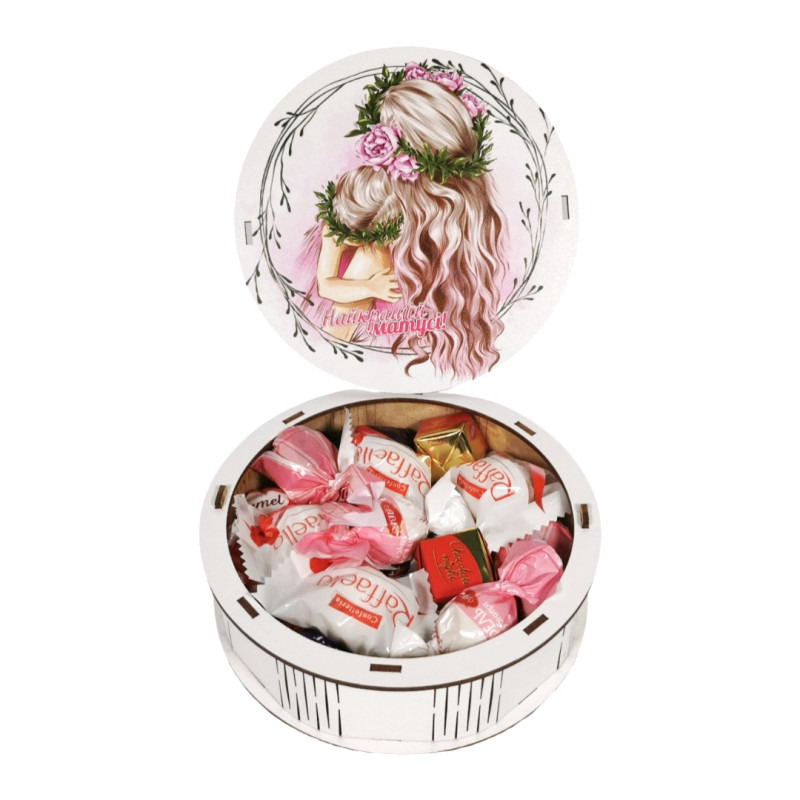Красивий та смачний солодкий подарунок в дерев'яному боксі з написом "Найкращій матусі"