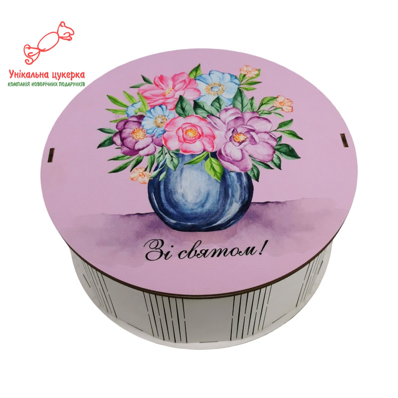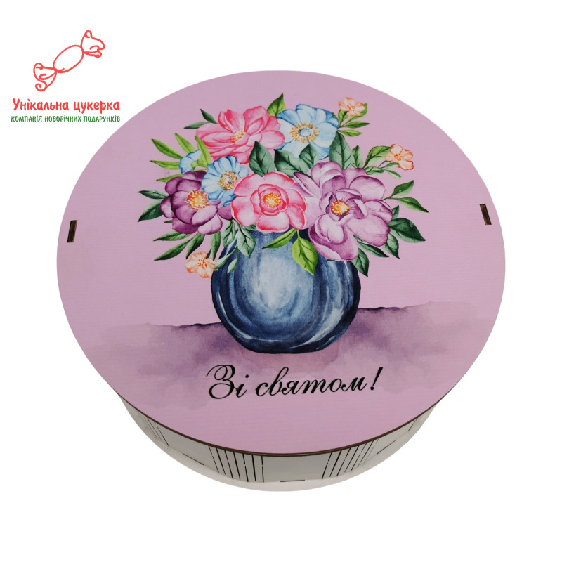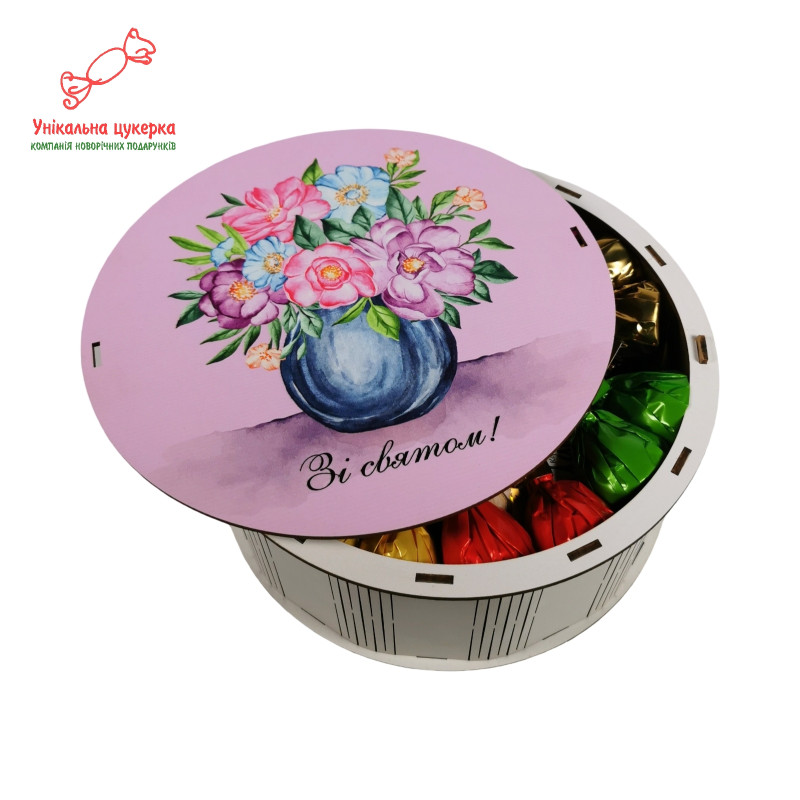 Подарунковий набір солодощів у дерев’яному боксі з написом "Зі святом!"