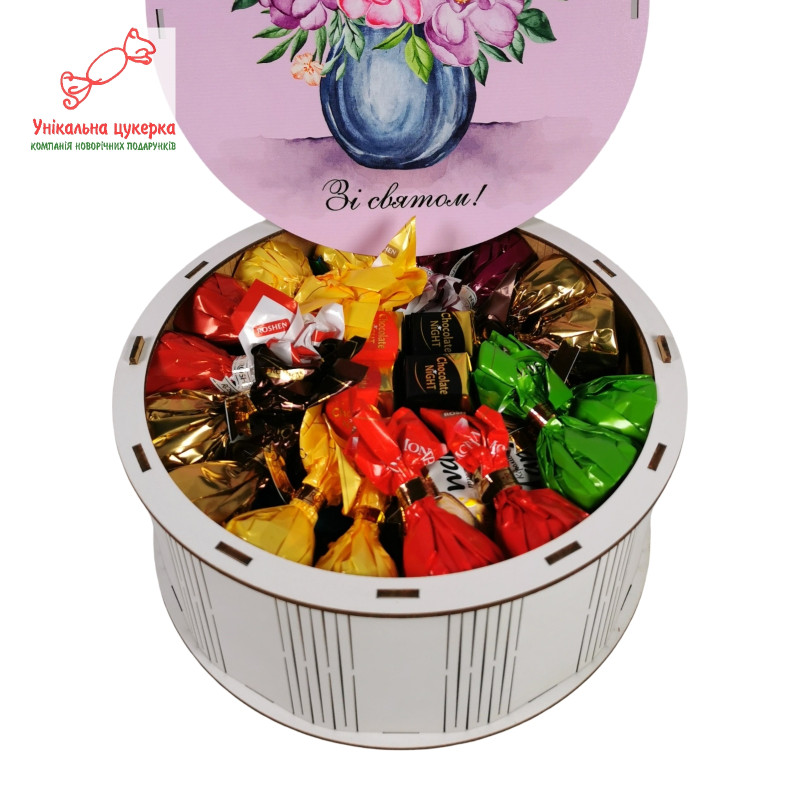 Чудовий солодкий подарунок для дівчини, жінки чи дитини прикрасить будь-яке свято – день народження, іменини, день матері, професійне свято. Широкий асортимент свіжих цукерок відомих виробників добавлять солодких барв до свята.
