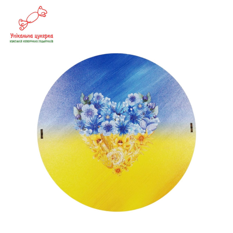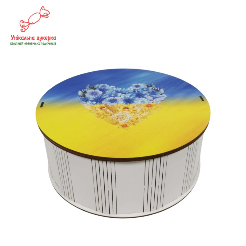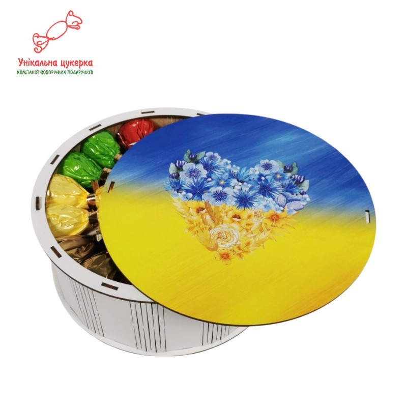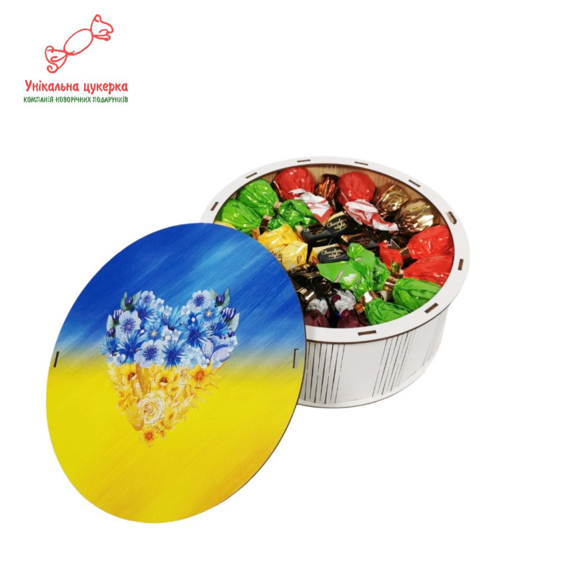 "Патріотичне серце" Дерев'яний бокс з солодощами№101/40, 1 кг, (21х21х9см)