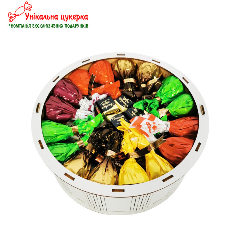 У випадку відсутності певної цукерки чи упаковки у виробника, у зв'язку з ситуацією в Україні, цукерка/упаковка буде замінена на рівноцінну по ціні, якості.