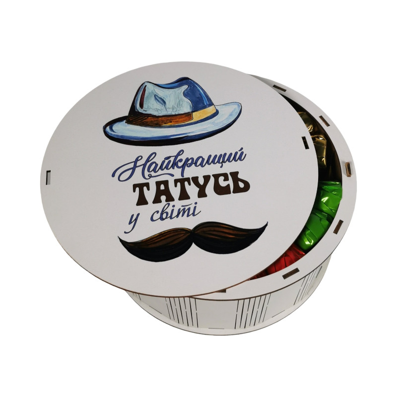 "Найкращий татусь у світі" Дерев'яний бокс з солодощами №101/58, 1 кг, (21х21х9 см)