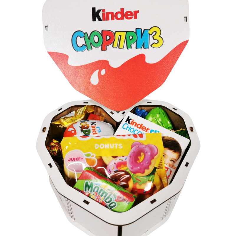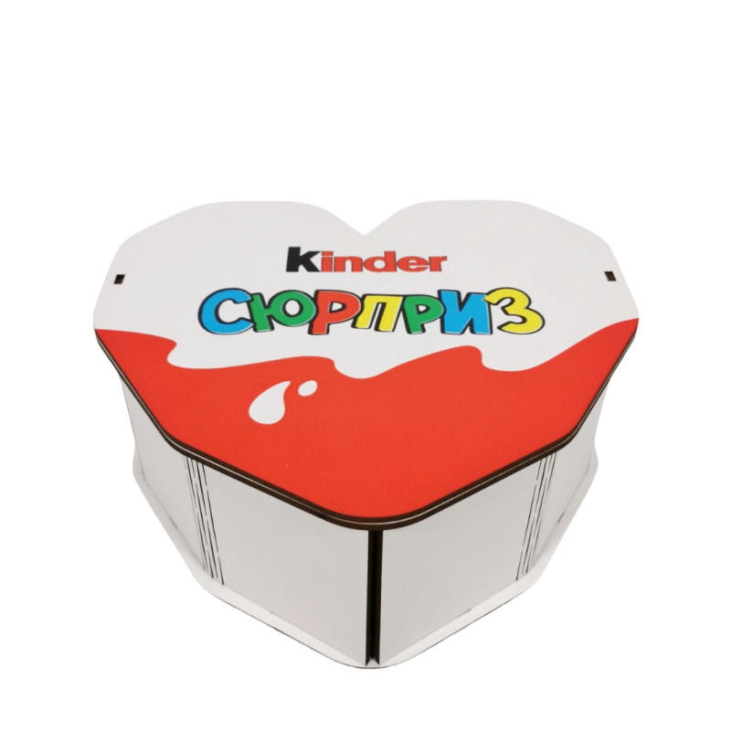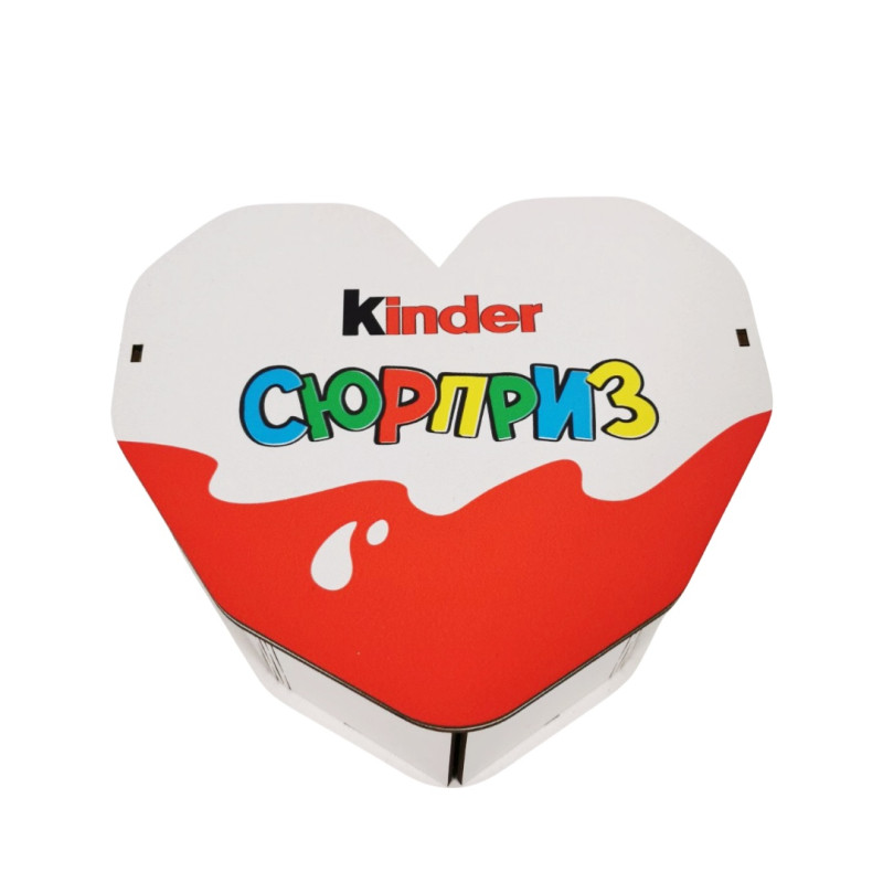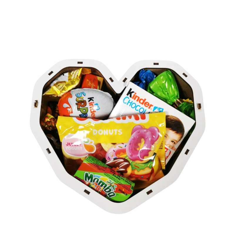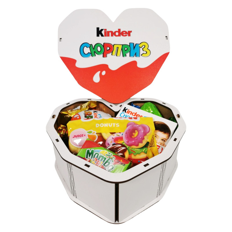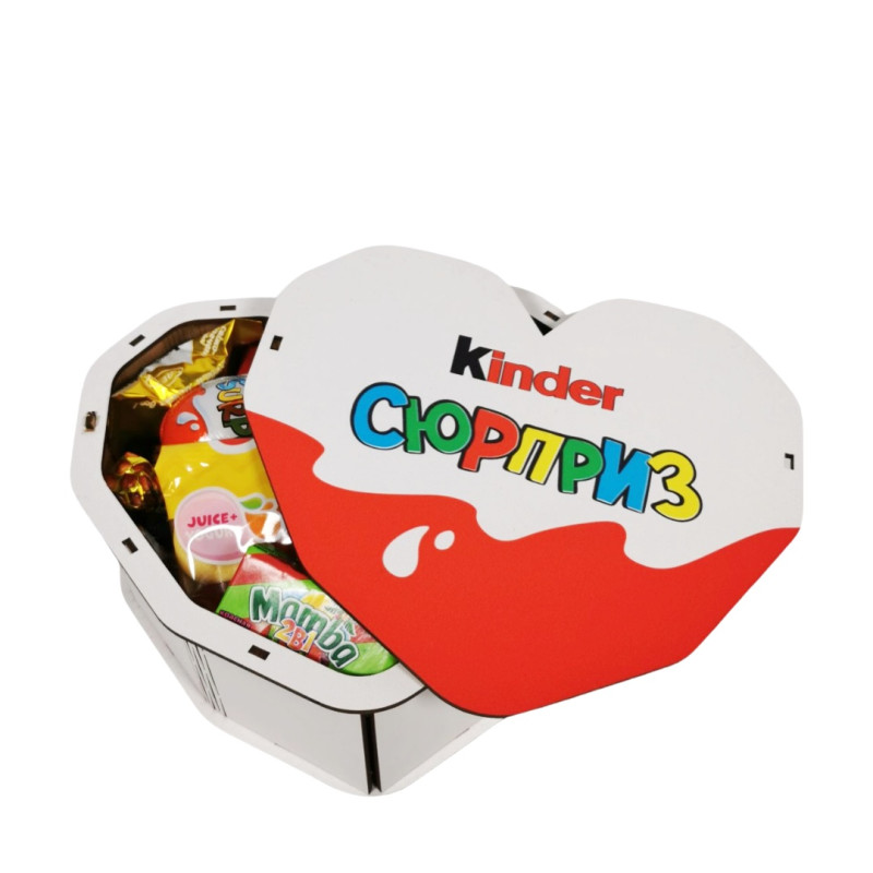 "Серце Кіндер Сюрприз" Дерев’яний бокс з солодощами №146, 0,46 кг, (20,5х18,5х7,5 см)