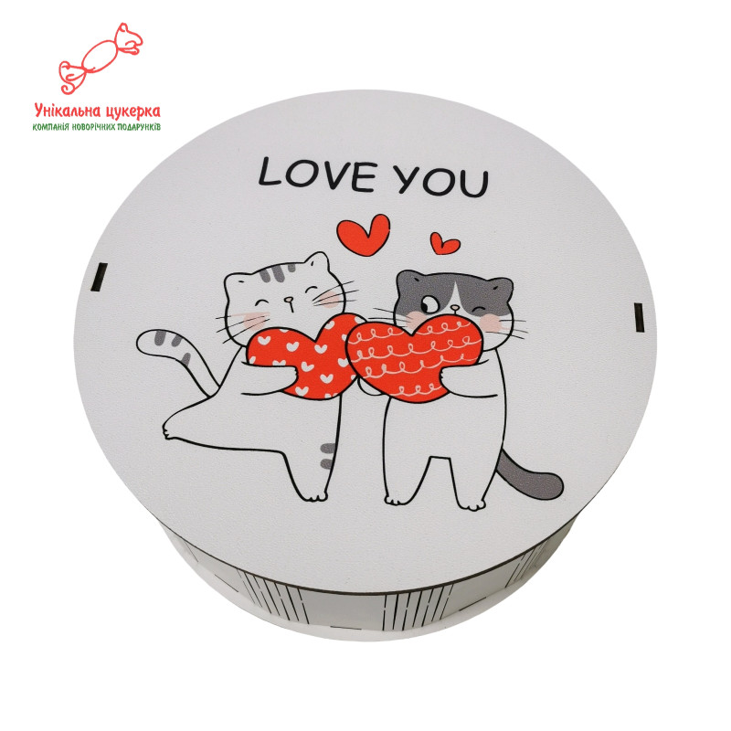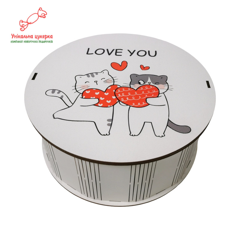 "Закохані котята" Дерев'яний бокс з солодощами №101/35, 1 кг (21х21х9 см)