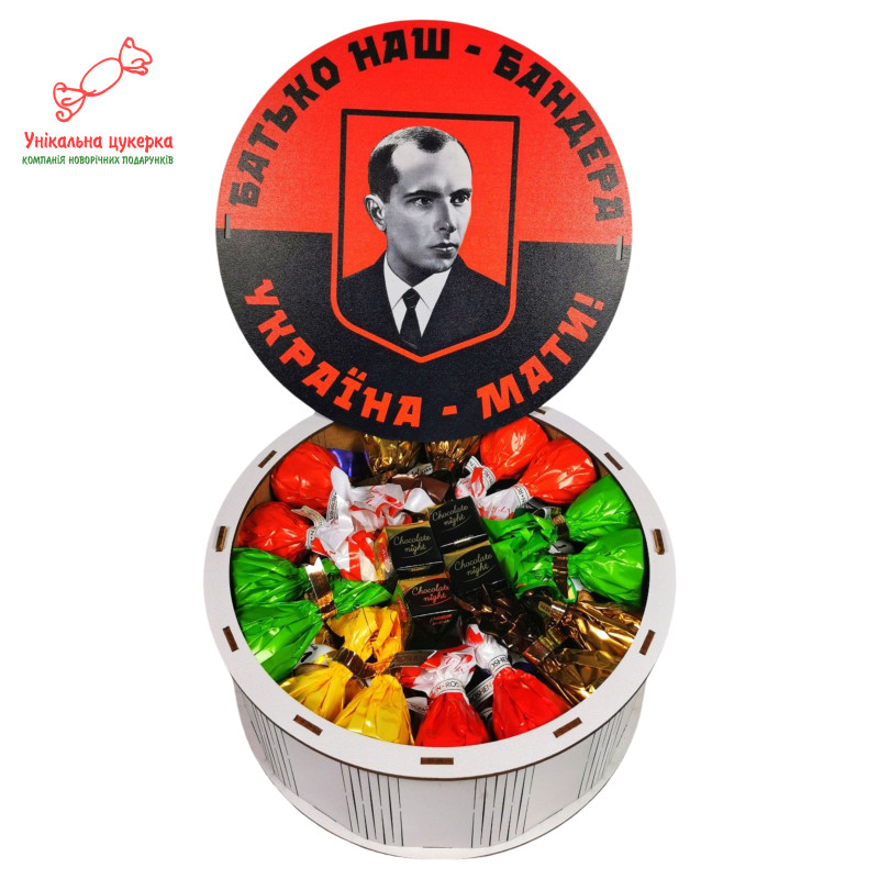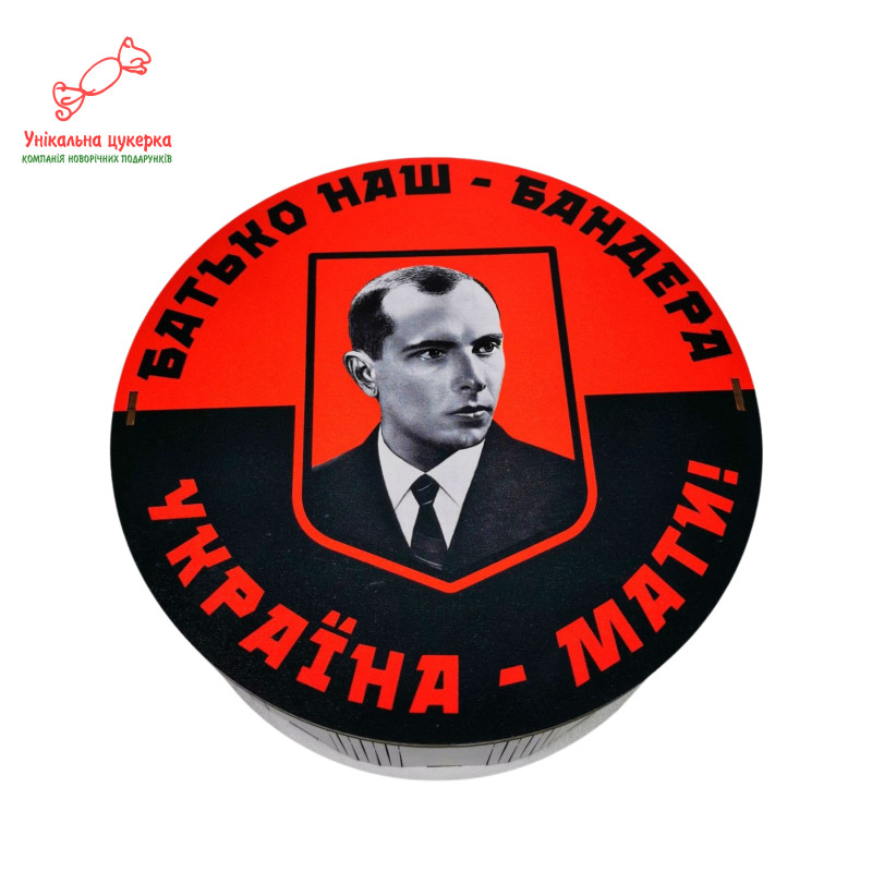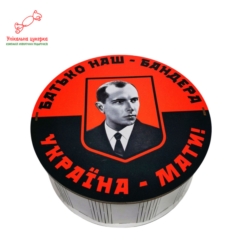 Чудовий патріотичний подарунок до будь-яких свят. Коробка із зображенням портрета Степана Бандери.