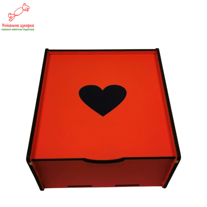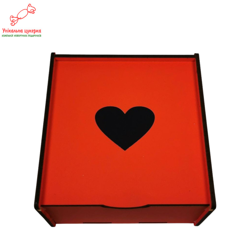 "Від щирого серця" Дерев'яний бокс з солодощами №103/04, 530 г (15х15х8 см)