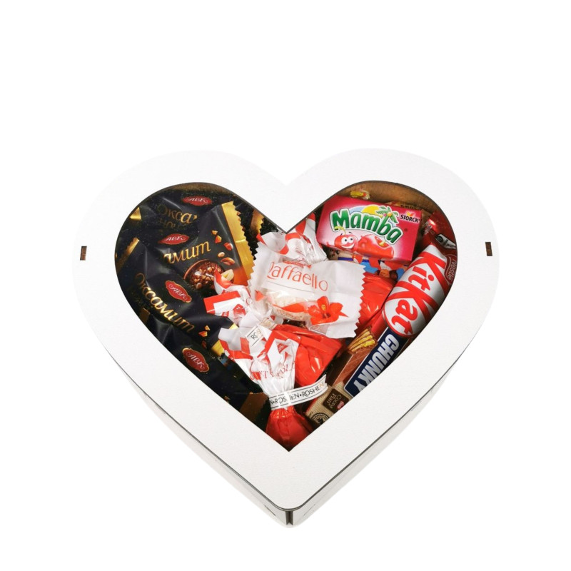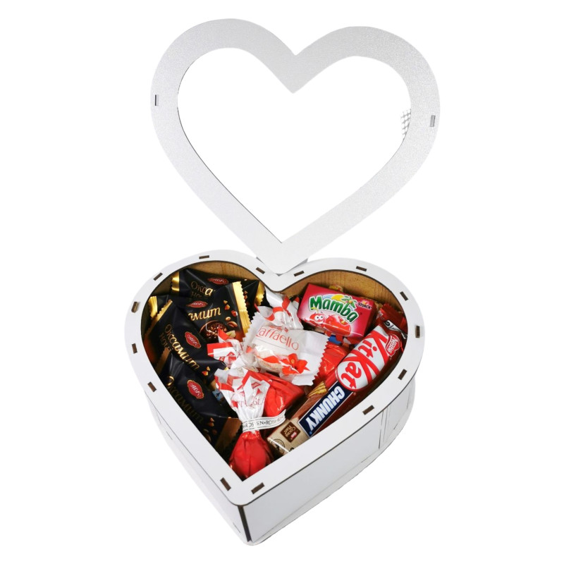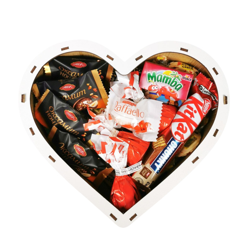 "Солодкі вітання" Дерев'яний бокс з солодощами №237, 437 г (22х20х8 см)