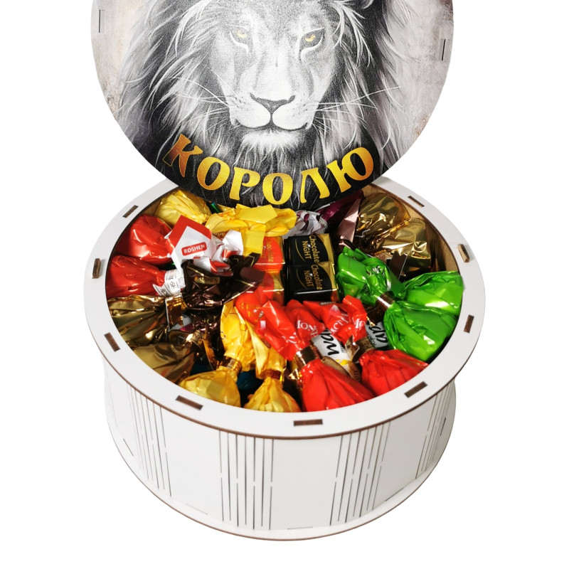 "Королю" Дерев'яний бокс з солодощами №101/04, 1 кг (21х21х9 см)
