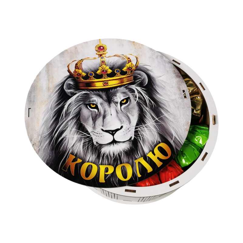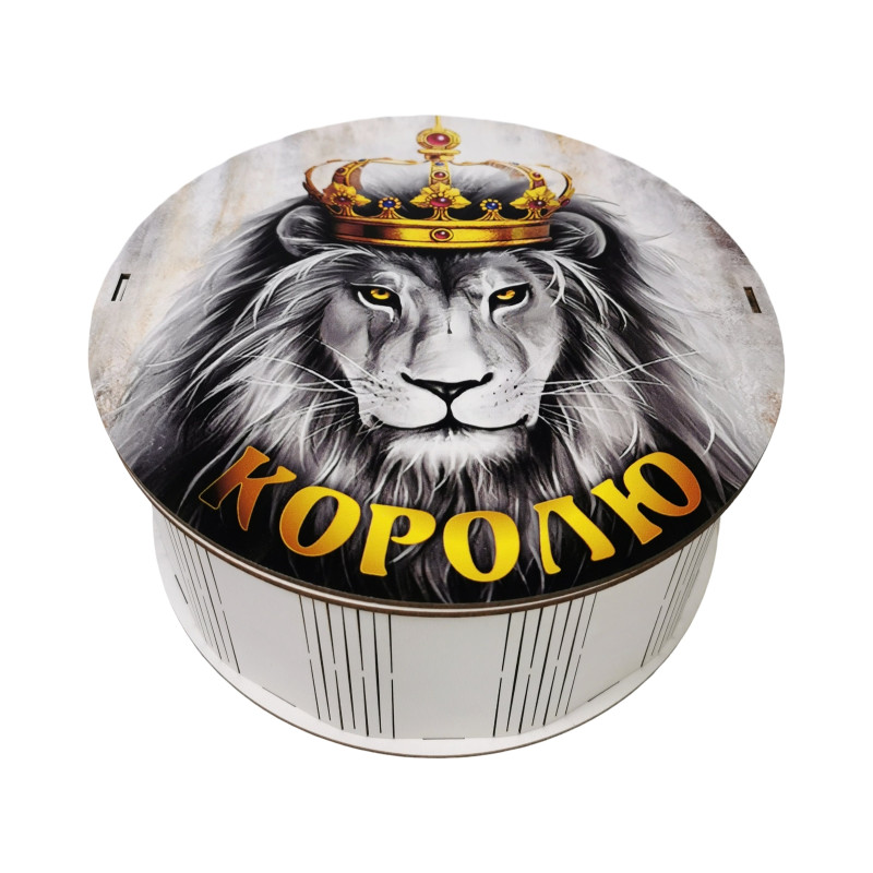 Коробка з зображенням лева-короля.