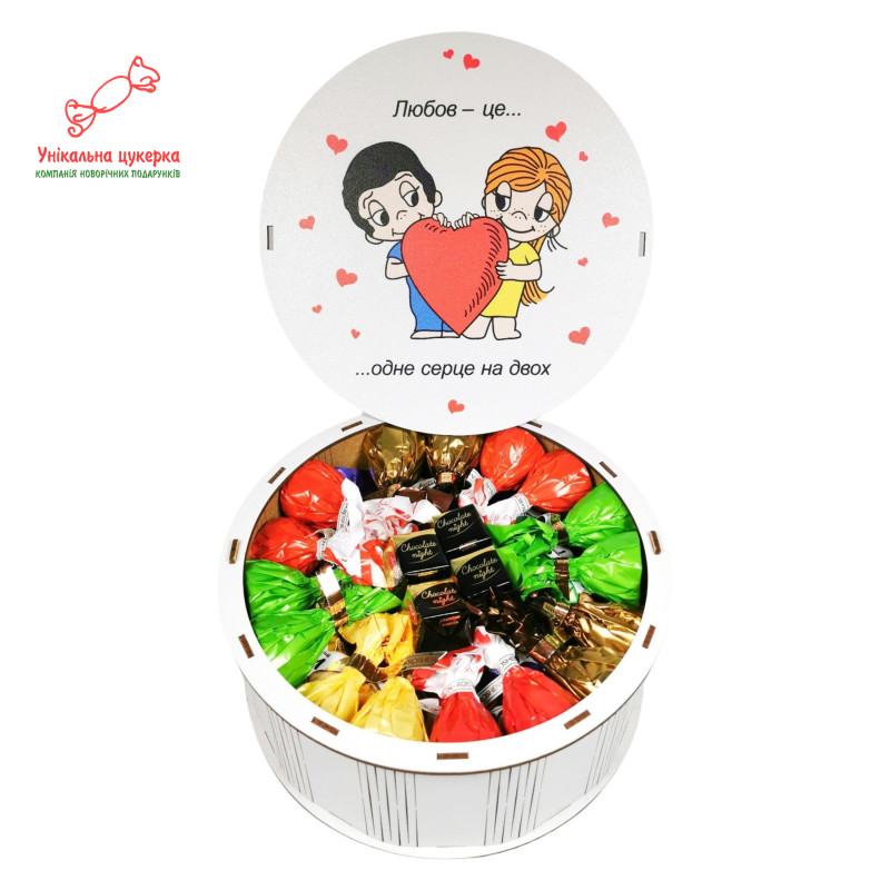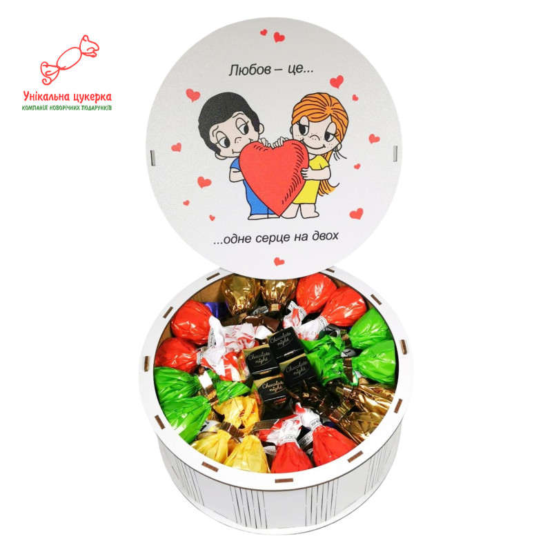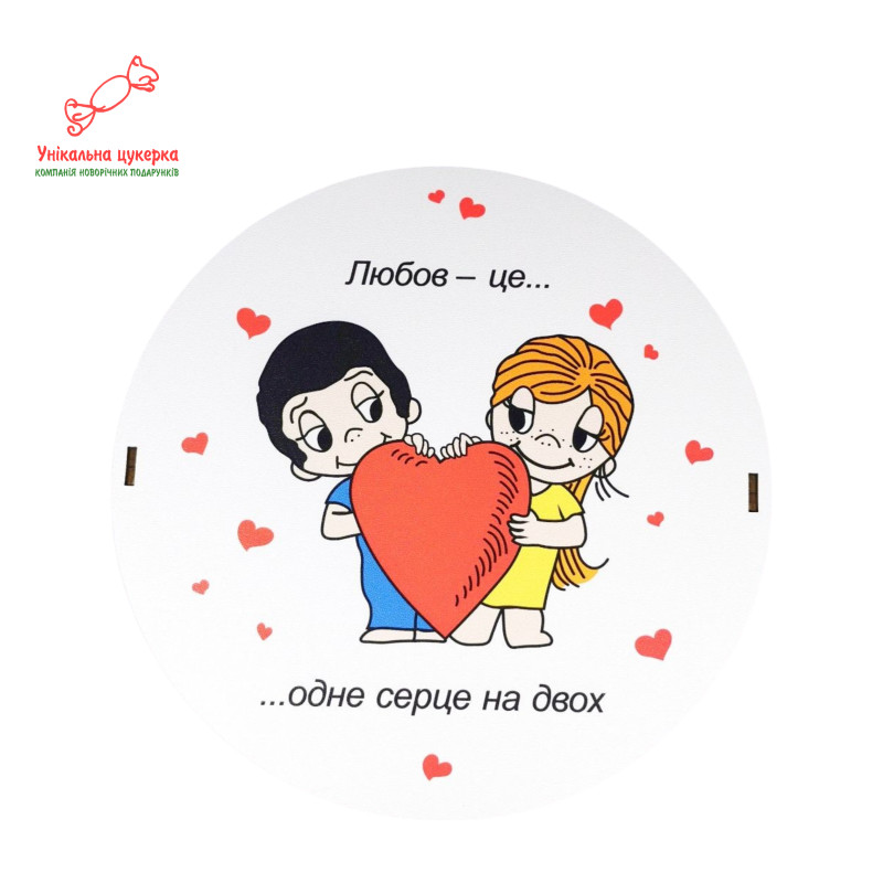 Чудовий подарунок на День закоханих та інші свята для коханої дружини чи чоловіка, для своїх половинок чи просто дорогих серцю людей. Підійде, щоб виразити найтепліші почуття і подарувати солодкі моменти радості своїм коханим. Любов - це одне серце на двох...
