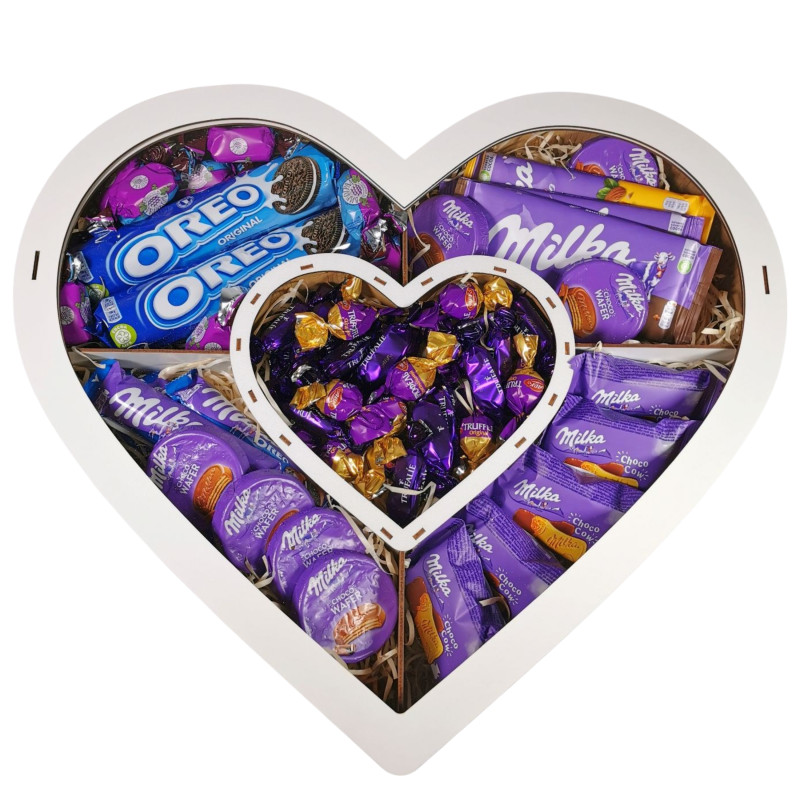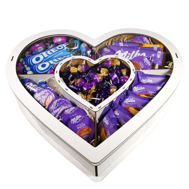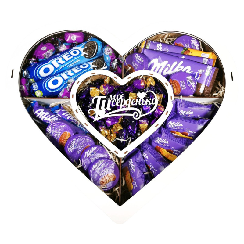 "Ти моє серденько" Дерев'яний бокс з солодощами №247, 1,55 кг (50х44х9 см)