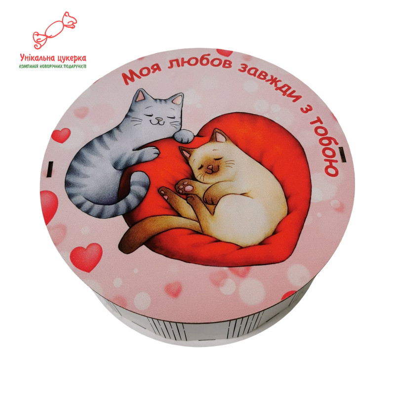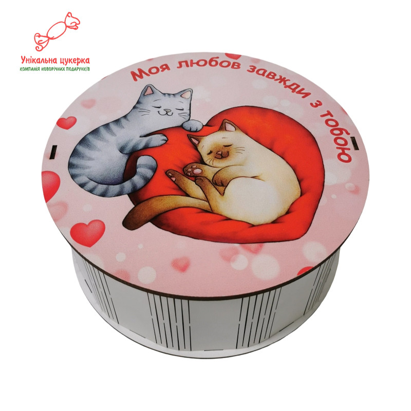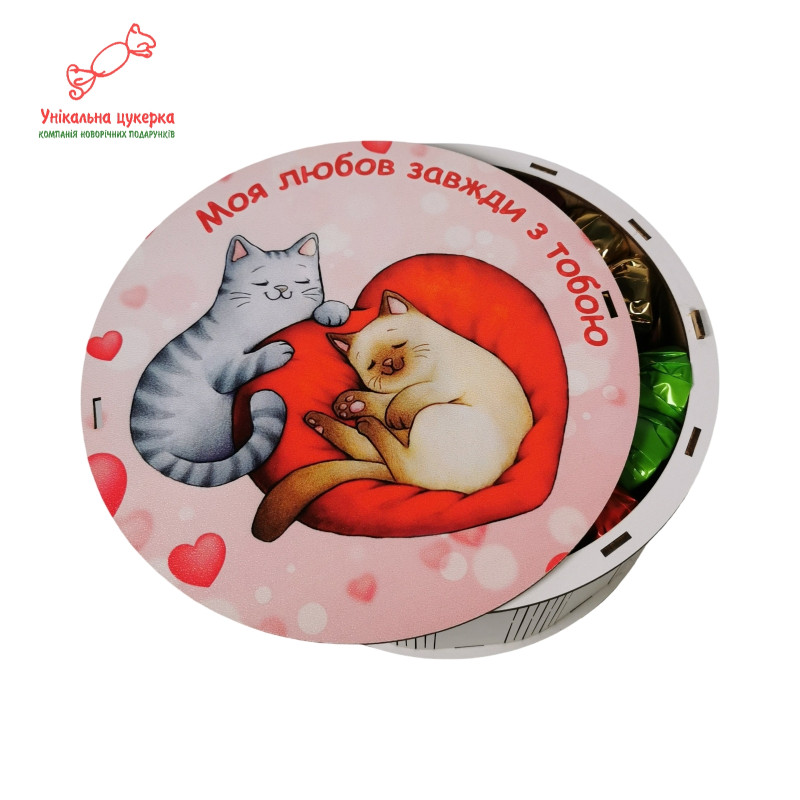 "Моя любов завжди з тобою" Дерев'яний бокс з солодощами №101/12, 1 кг (21х21х9 см)