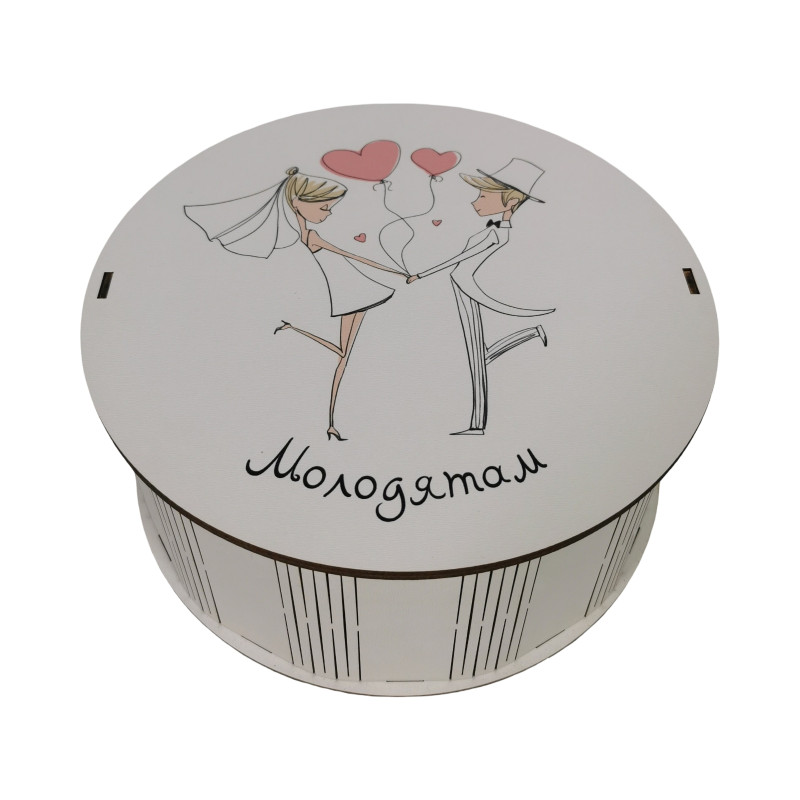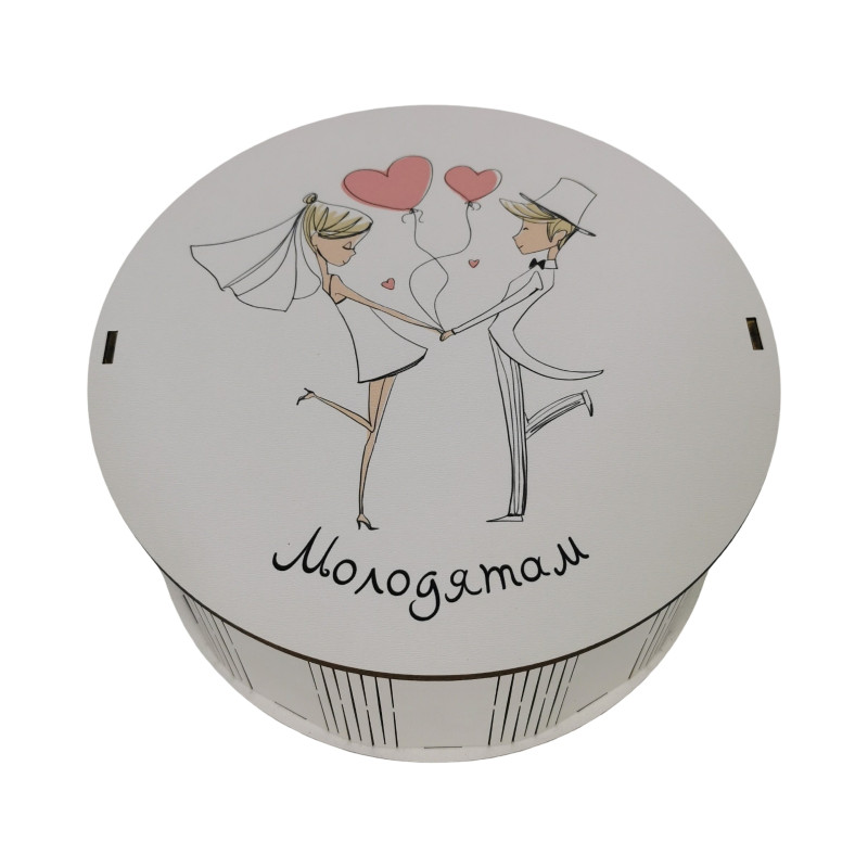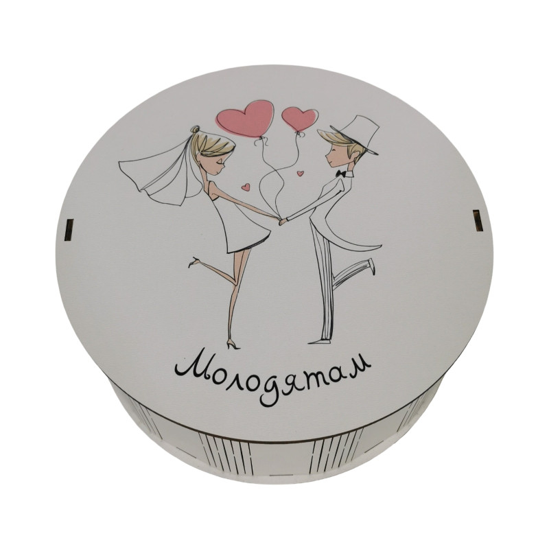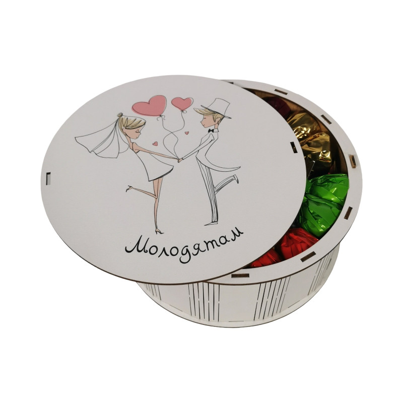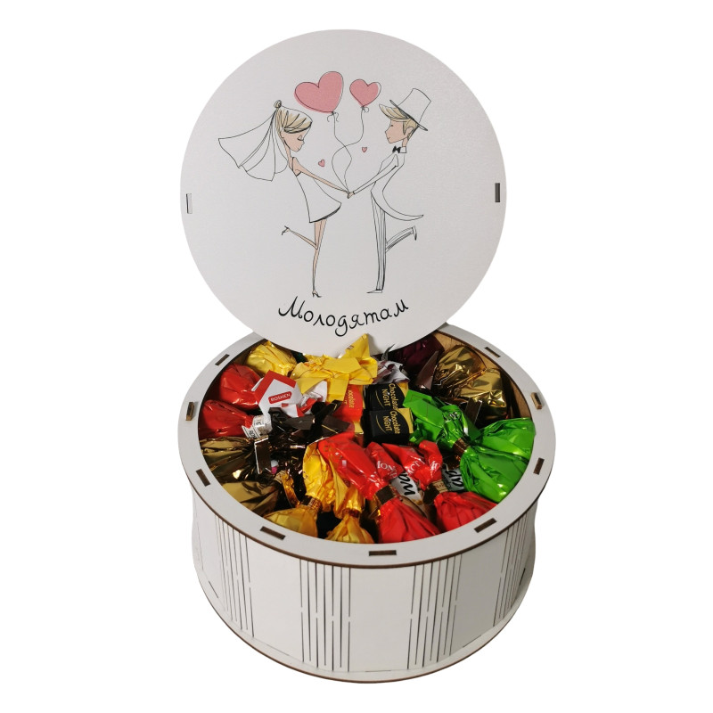"Молодятам" Дерев'яний бокс з солодощами №101/33, 1 кг (21х21х9 см)