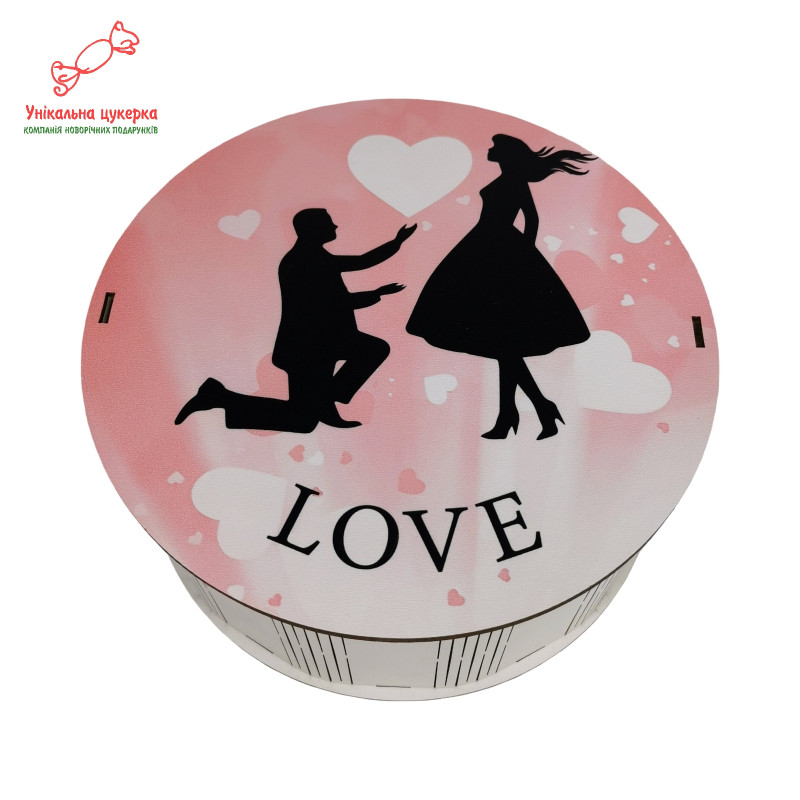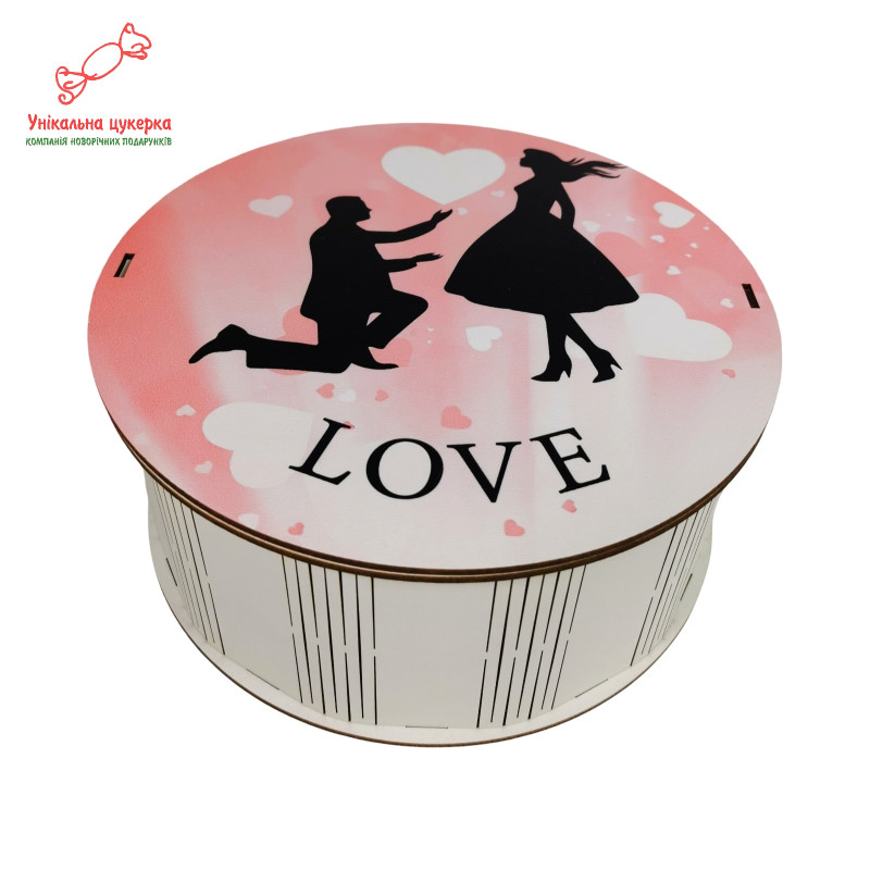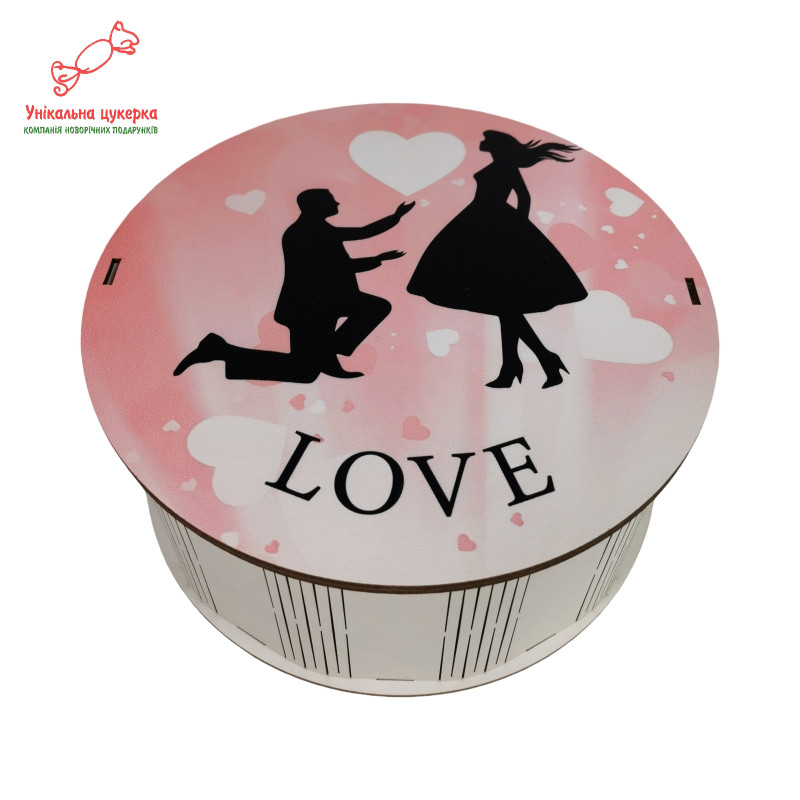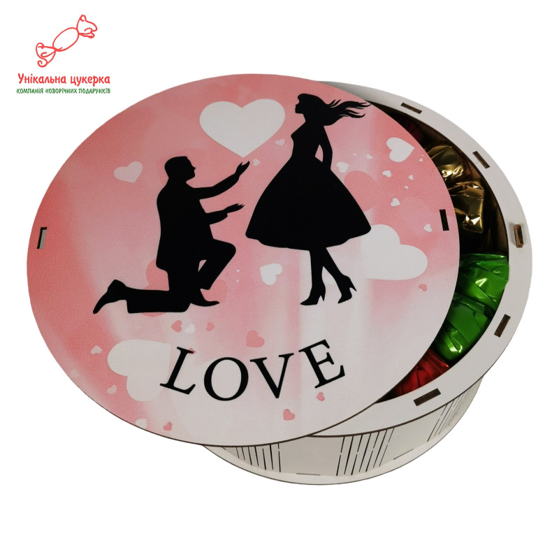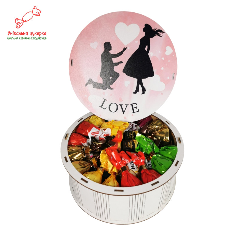 "Освідчення в коханні" Дерев'яний бокс з солодощами №261, 1 кг (21х21х9 см)