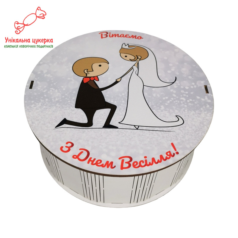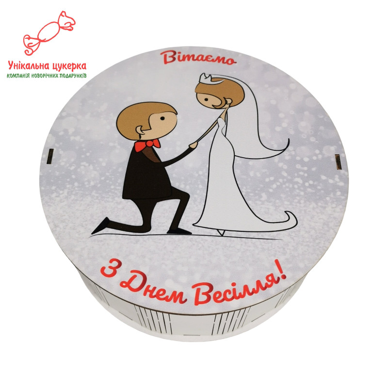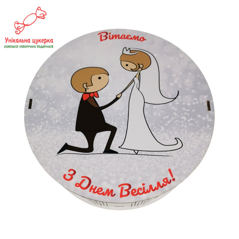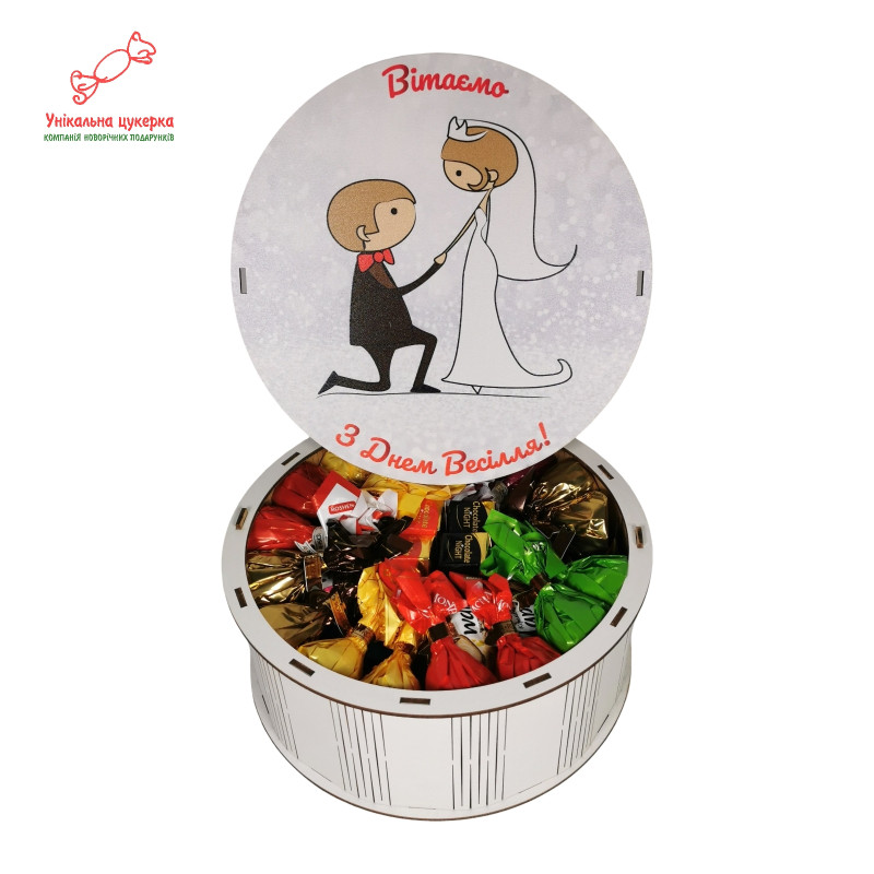 "З Днем весілля" Дерев'яний бокс з солодощами №101/07, 1 кг (21х21х9 см)