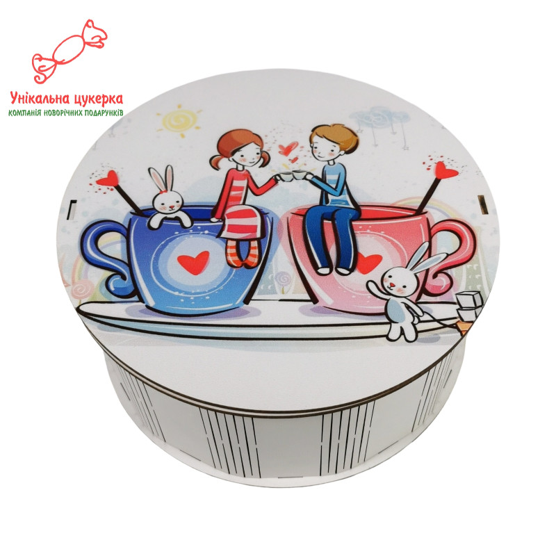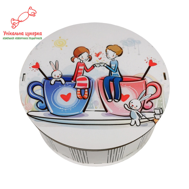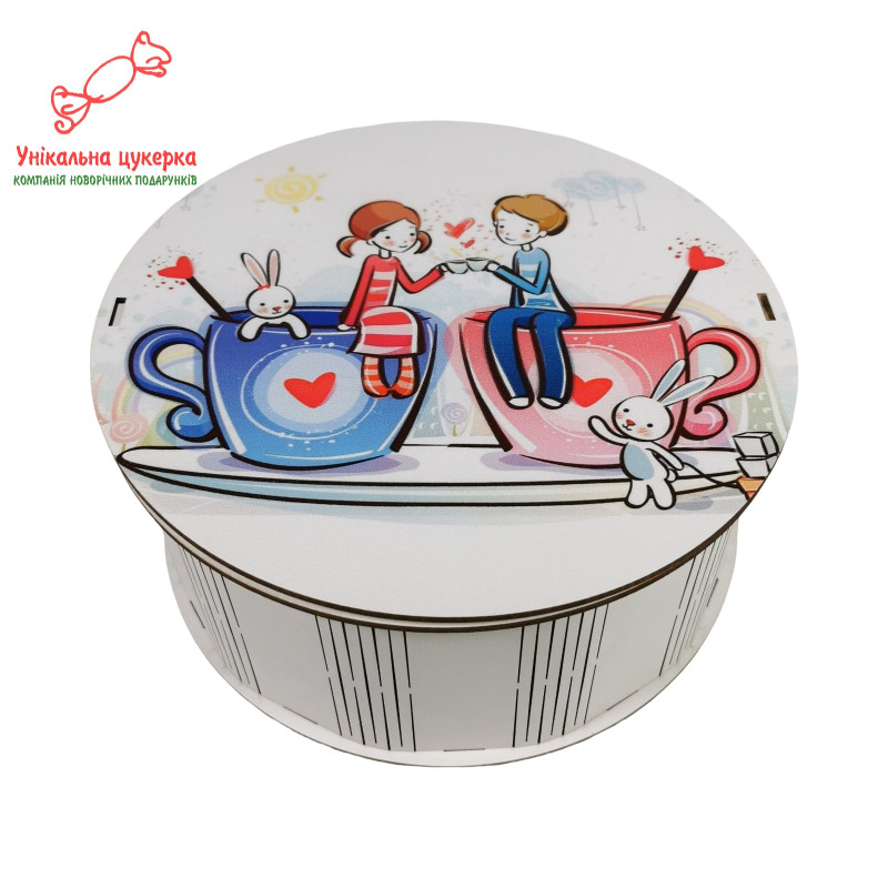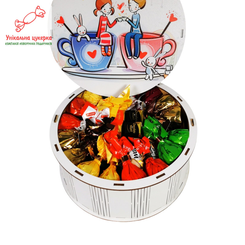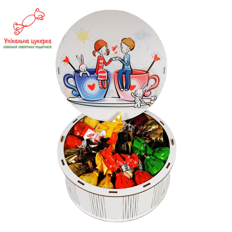 "Закохана пара" Дерев'яний бокс з солодощами №101/78, 1 кг (21х21х9 см)