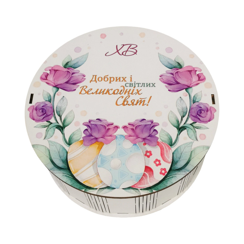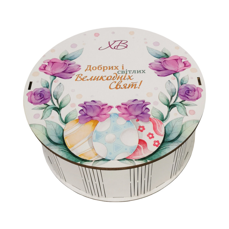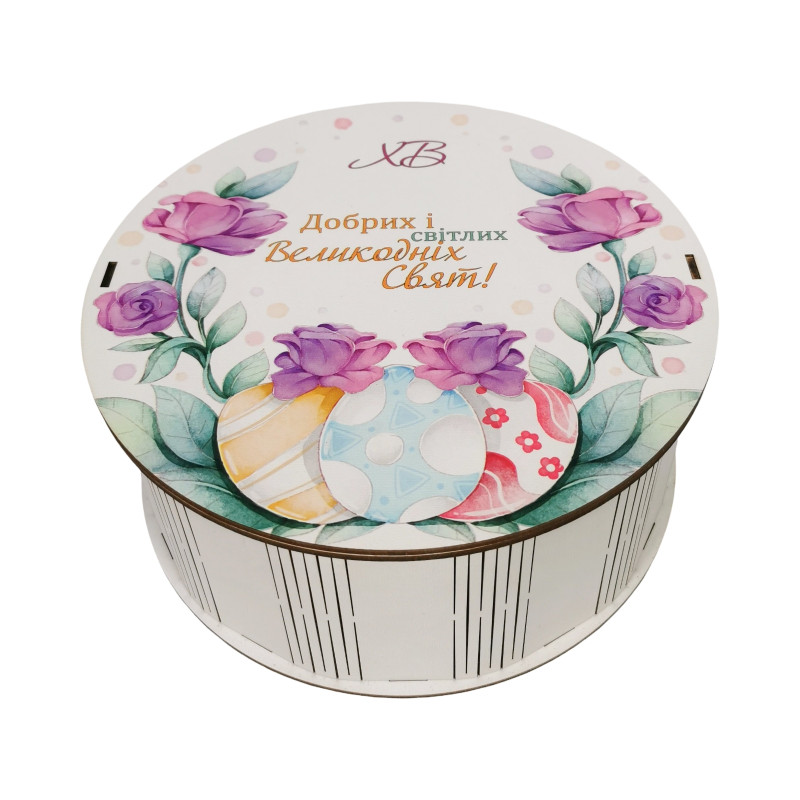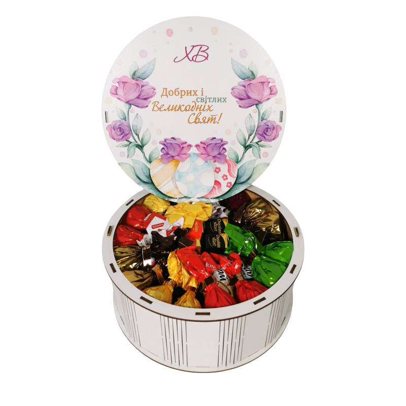"Великодній подарунок" Дерев'яний бокс з солодощами №101/10, 1 кг (21х21х9 см)