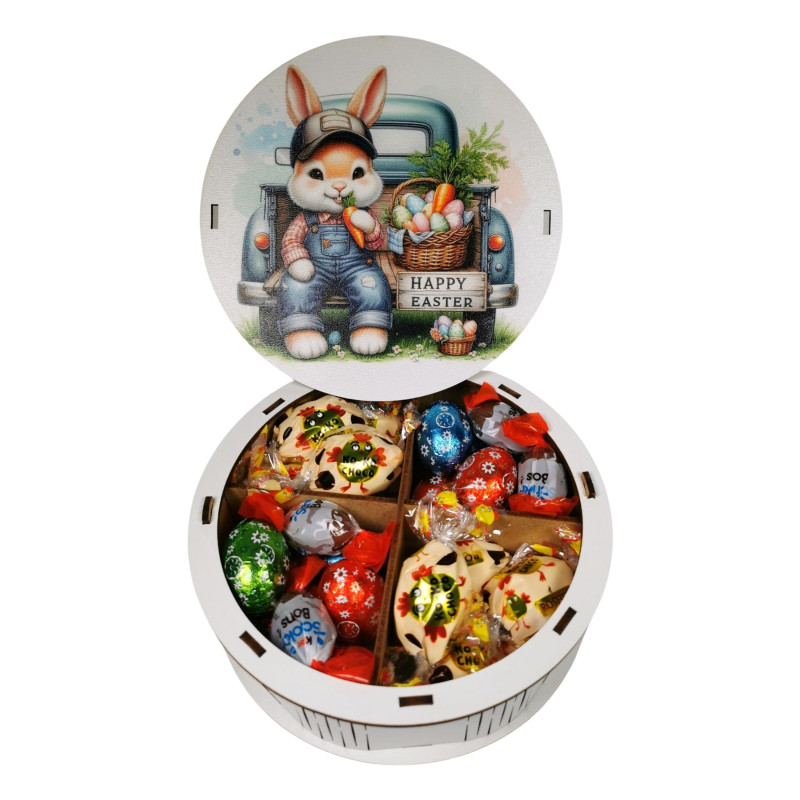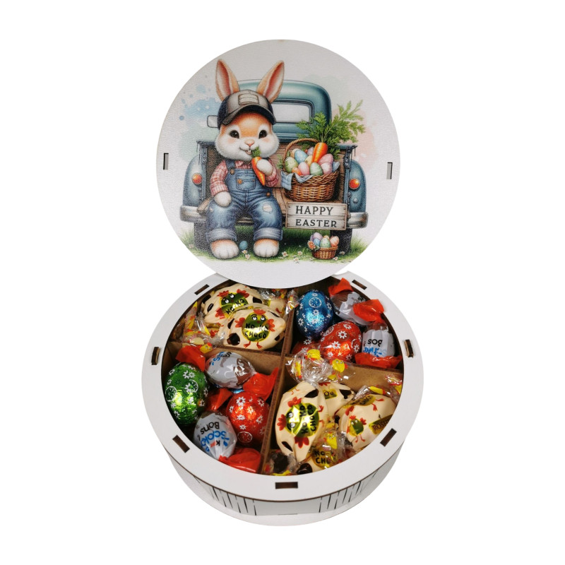 "Happy Easter" Дерев'яний бокс з солодощами №278/2, (15х15х5 см)