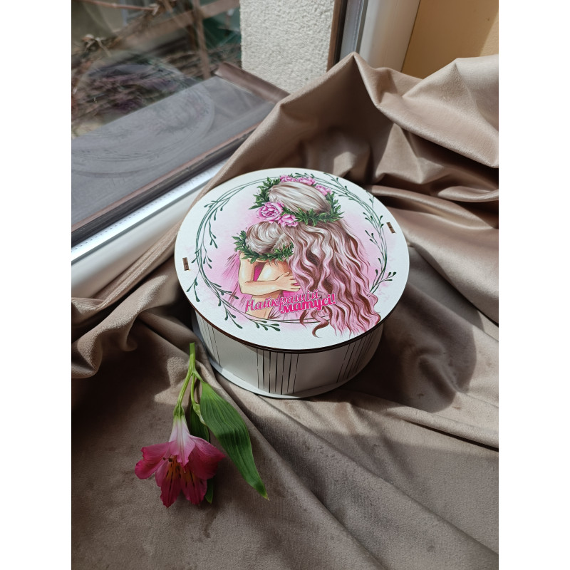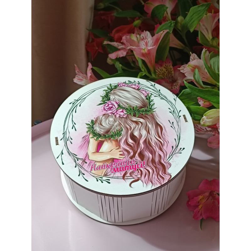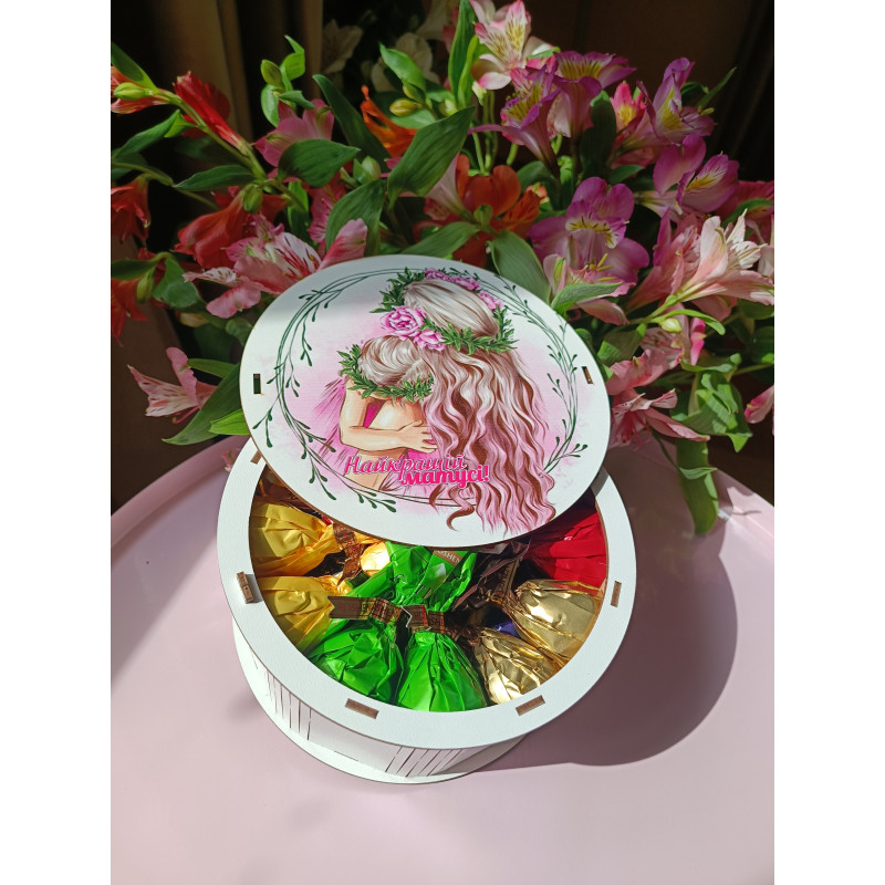 "Найкращій матусі"" Дерев’яний бокс з солодощами №102/08, 515 г, (15х15х7 см)