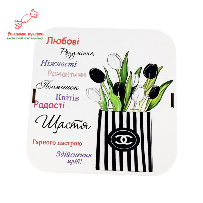 | Для кого: | До Дня народження, Подарунки вчителям, Подарунки закоханим, Подарунки для жінок, Подарунки для мами, На 8 березня, Подарунки для бабусі |