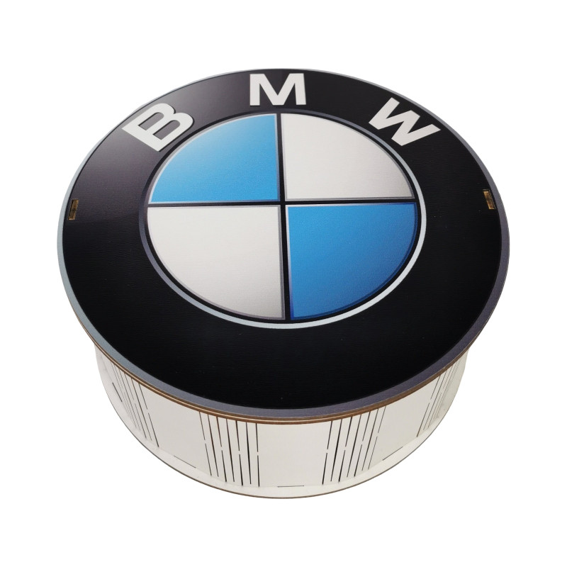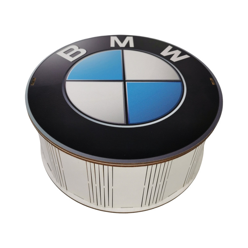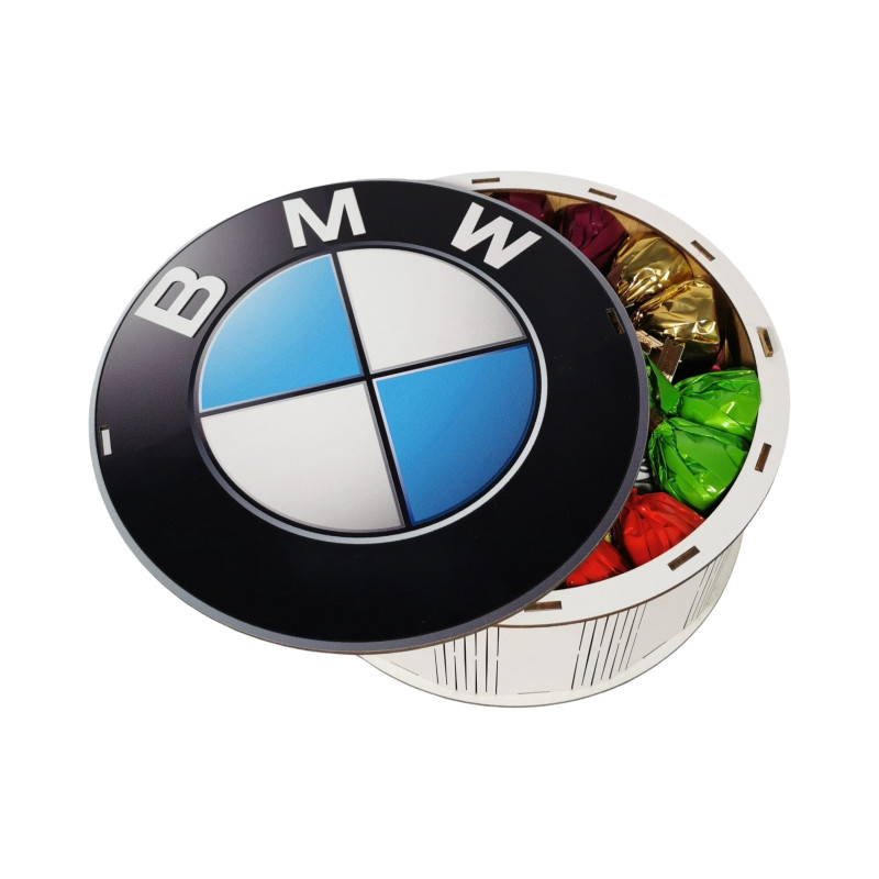 "Запаска справжнього автомобіліста BMW" Дерев'яний бокс з солодощами №101/21, 1 кг, (21х21х9см)