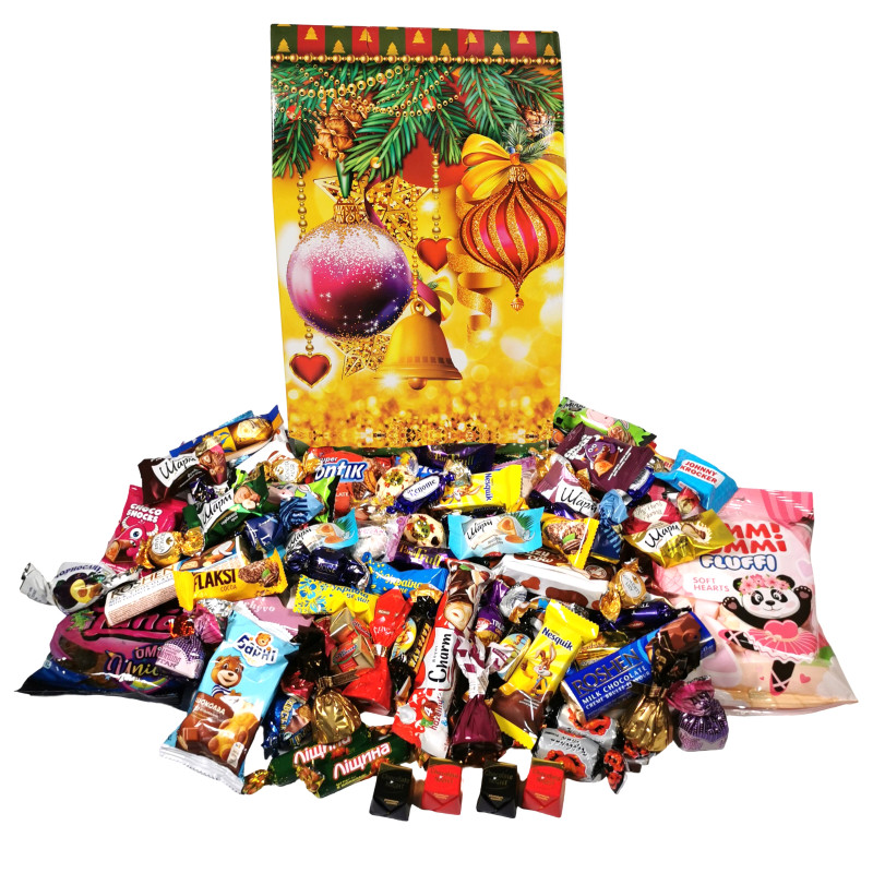"Мон Блан з цілим лісовим горіхом" Рошен, "Мон Блан" з карамелізов. мигд. Рошен, "Мон Блан" з подр. мигдалем Рошен, "Червоний мак" Рошен, "Royal Charm фундук" батончик АВК, "Королівський шарм Мигдаль" АВК, "Королівський шарм Фундук" АВК, "Королівський шарм" АВК, "Труфальє" АВК, "Трюфель" АВК, "Шоколадна ніч" АВК, "Шоколадна ніч" молочна АВК, "Konafetto" Рошен, "Кара-Кум" Рошен, "Коко чоко White" Рошен, "Ліщина" Рошен, "Mone" молочний трюфель KONTI, "Mone" чорний трюфель KONTI, "Золота лілія" KONTI, "Пташине молоко" ТМ ЖАКО, "Пташка мармелашка" ТМ ЖАКО, "Франческа" з цілим мигдалем ТМ Балу, "Грильяж" Аметист, "Диво Коконат" Аметист, "Метеорит" Аметист, "Прометей з родзинками" Аметист, "Чорнослив з горіхом" Аметист, "Чорнослив з горіхом" в білому шоколаді Аметист, "Krock" з арах. пастою Рошен, "Кенді нат карам.+арахіс" Рошен, "Flaksi cocoa" Рошен, "Флоренс" АВК, "Хто сказав МУ?" міні АВК, "Belissimo" полуниця з вершками KONTI, "Ромашка" Бісквітка, "Чарівна казка" Бісквітка, "Ведмежатко" з горіхом KONTI, "Паратруфель" Golski, "Україна це ми" Golski, "Crispini" Golski, "Кремлате" Бісквітка, "Ля крема" Бісквітка, "Мірель" Бісквітка, "Ніколь крем брюле" Бісквітка, "Ніколь" Бісквітка, "Паризька весна" Бісквітка, "Ранкова зірка" Бісквітка, "Реноме" Бісквітка, "Желейка цитрус" Бісквітка, "Johnny Krocker" coconut Рошен, "Johnny Krocker" Рошен, "Вершки-лінивці" Рошен, "Choco Shocks" вафля Polus, "Батон" помадно-шоколадний Рошен, "Minky-Binky" Рошен, "Yummi's" тоффі Рошен, "Карамель" молочна Бісквітка, "Мілкі сплеш" Рошен, "Шалена бджілка" Рошен, "Несквік" Нестле, "Super KONTI" KONTI 45 г, "Бісквіт БАРНІ" 30 г, "Juveland" АВК, Маршмеллоу "Yummi Gummi" Soft Рошен, «Kinder Delice» 39 г.