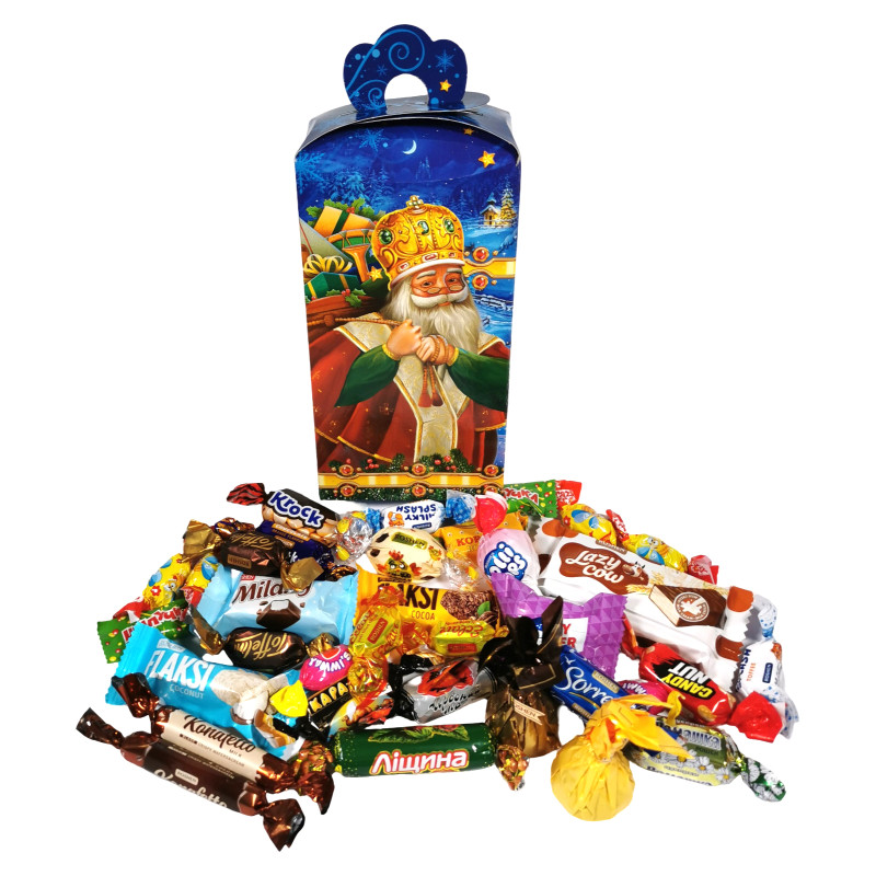 | Вміст подарунку | Шоколадний, іриски |