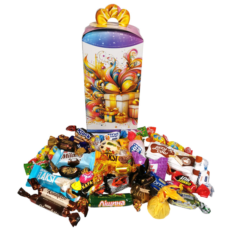 | Вміст подарунку | Шоколадний, іриски |