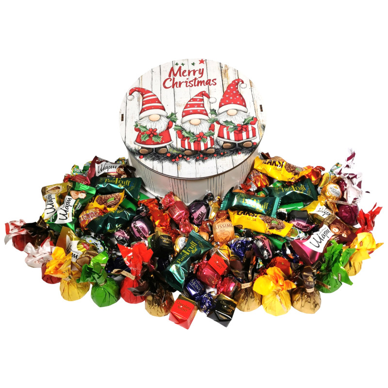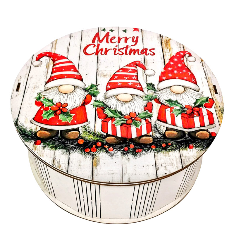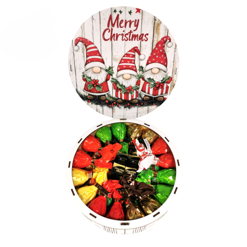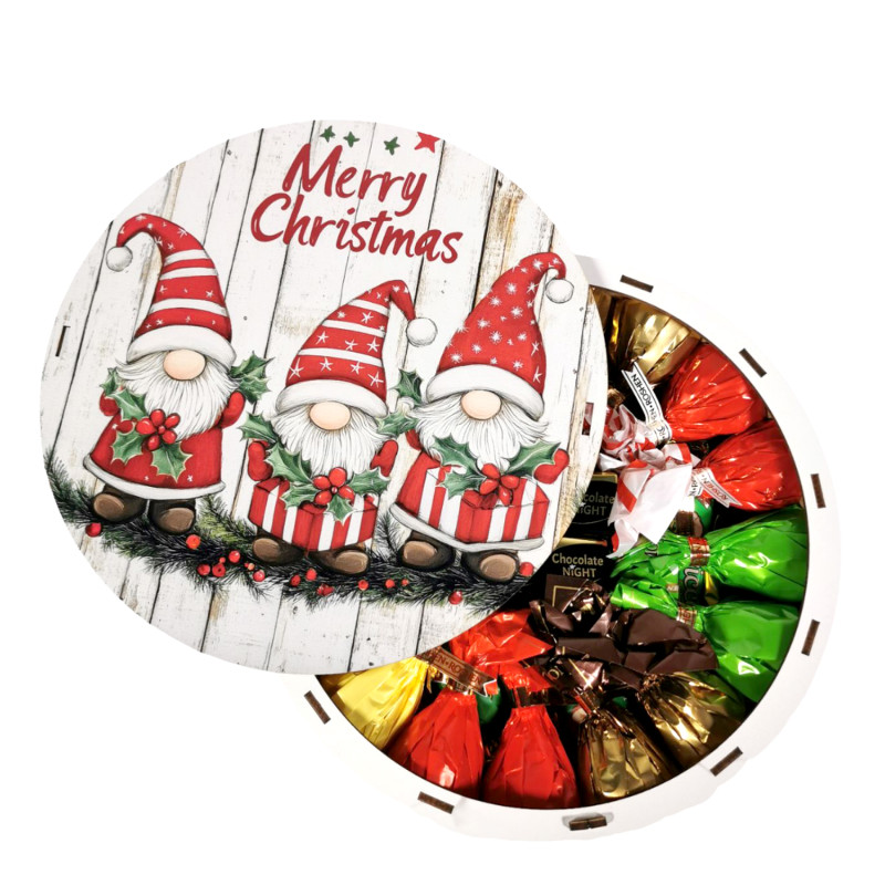 Подарунок №30/2 “Гноми-колядники” 1 кг (21х21х9 см, у дерев'яній коробці)
