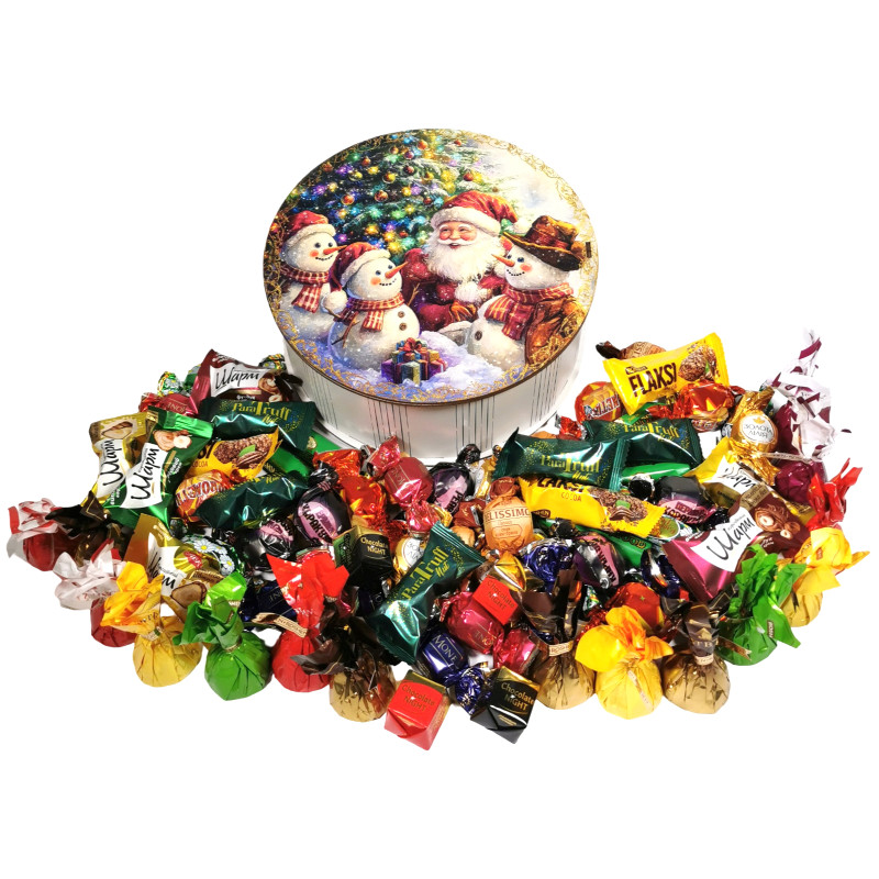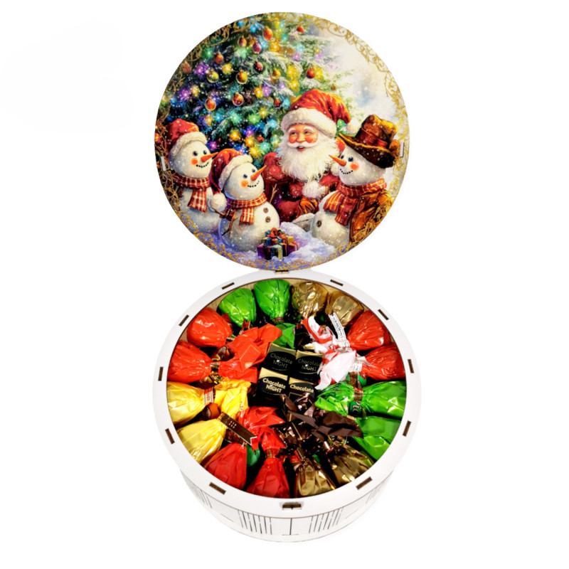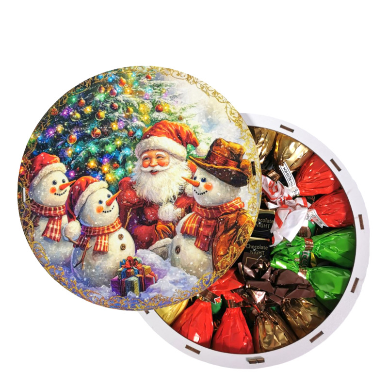 Подарунок №30/16 “Веселі друзі Санти” 1 кг (21х21х9 см, у дерев'яній коробці)