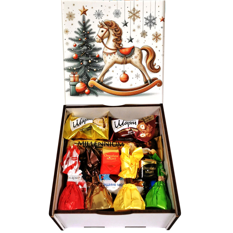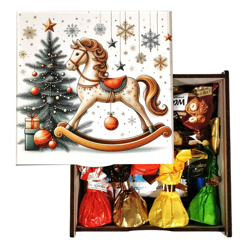 Подарунок №31/5 "Різдвяна подорож на конячці" 540г (15х15х7 см, у дерев'яній коробці)
