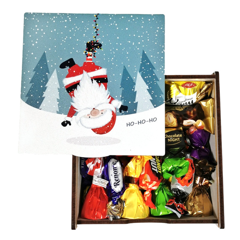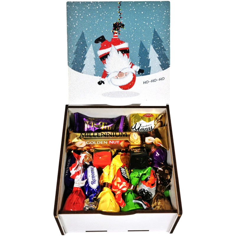Подарунок №31/10 “Солодке диво з Сантою” 540г (15х15х7 см, у дерев'яній коробці)