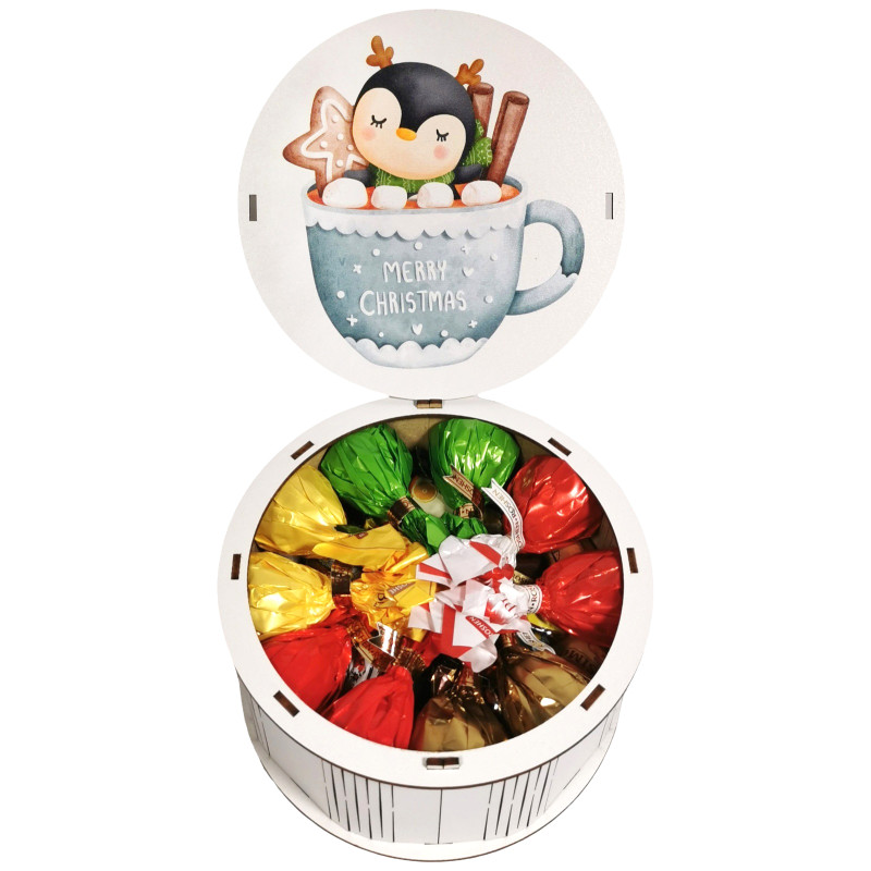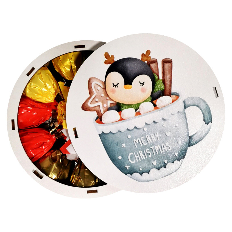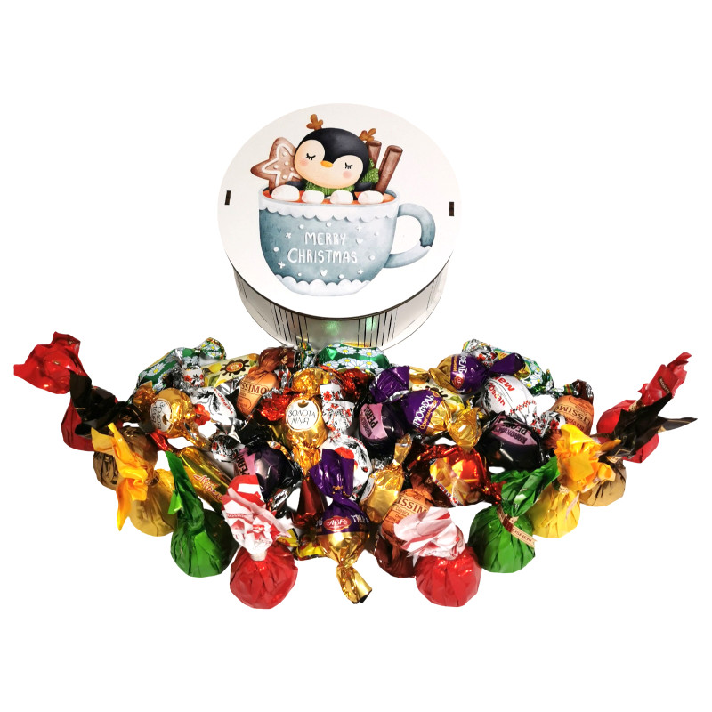 Подарунок №32/8 “Пінгвінчик і свято” 515г (15х15х7 см, у дерев'яній коробці)