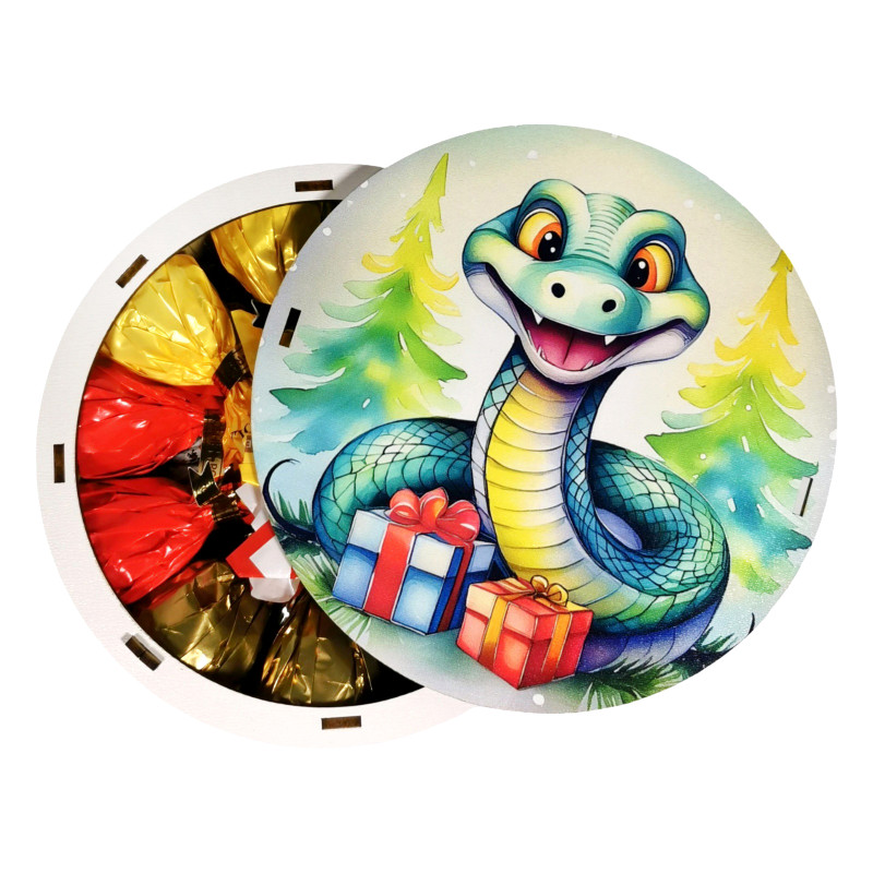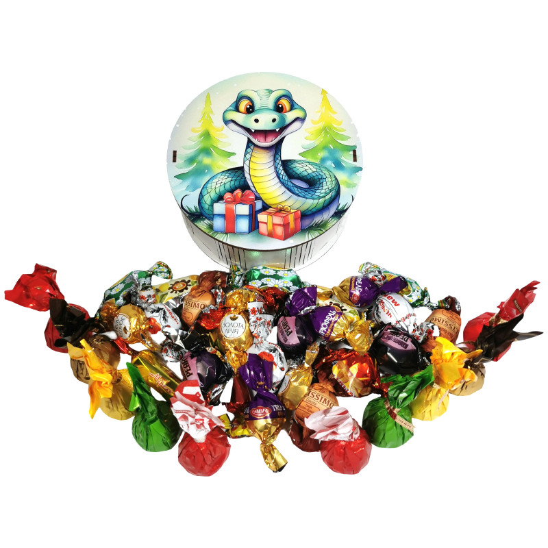 Подарунок №32/10 “Змійка смаколиків” 515г (15х15х7 см, у дерев'яній коробці)