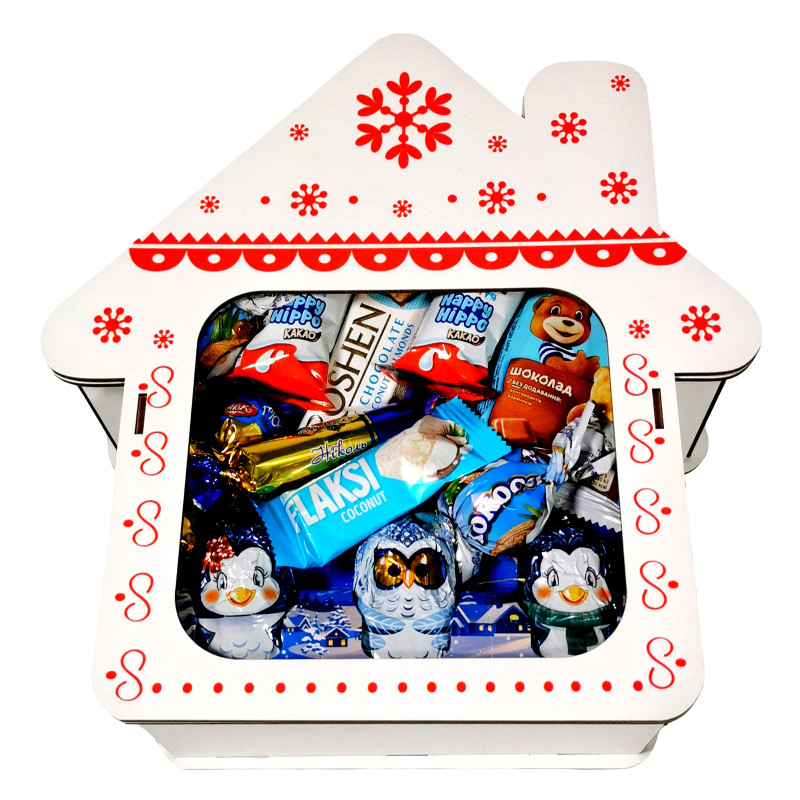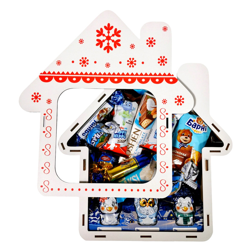 Подарунок №33/2 “Різдвяний будиночок” 880г (27х25х9см, у дерев'яній коробці)