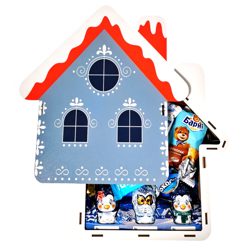 Подарунок №33/2 “Різдвяний будиночок” 880г (27х25х9см, у дерев'яній коробці)