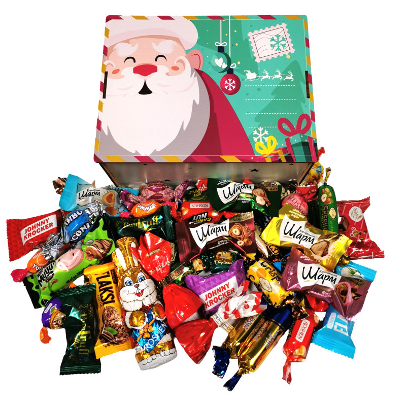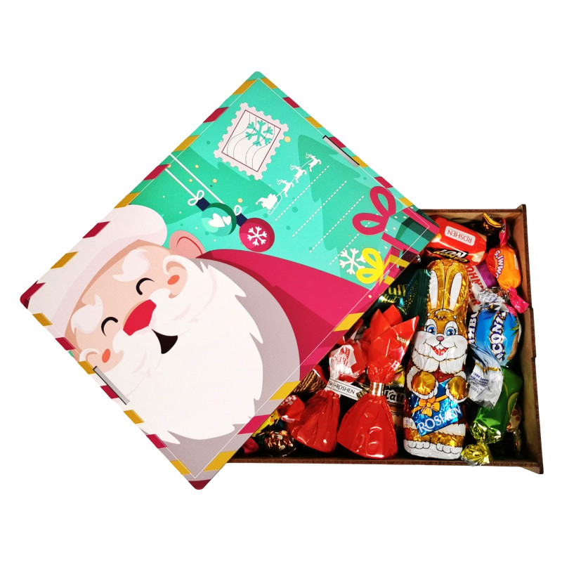 Подарунок №37 “Бандероль від Санти” 600г (20х15х10см, у дерев'яній коробці)