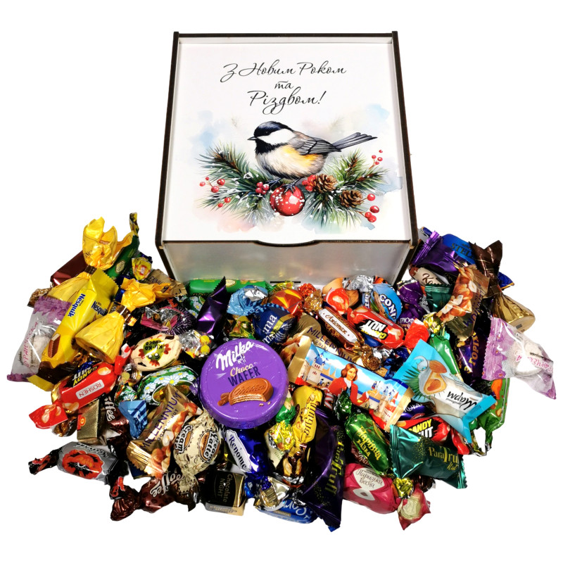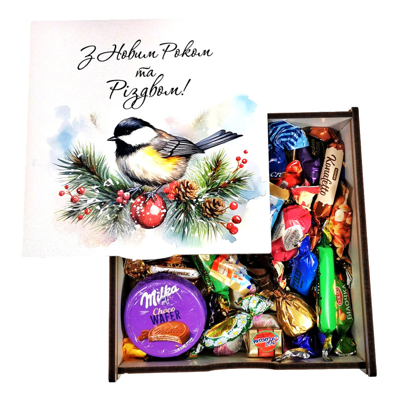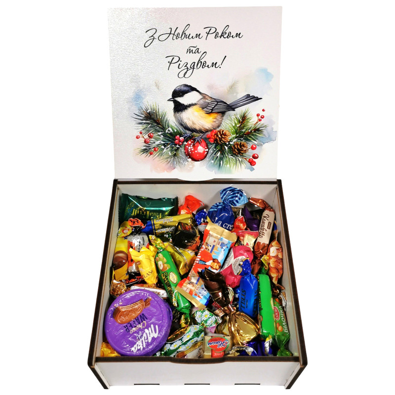 Подарунок №38/4 “З Новим роком та Різдвом” 1кг (20х20х9см, у дерев'яній коробці)