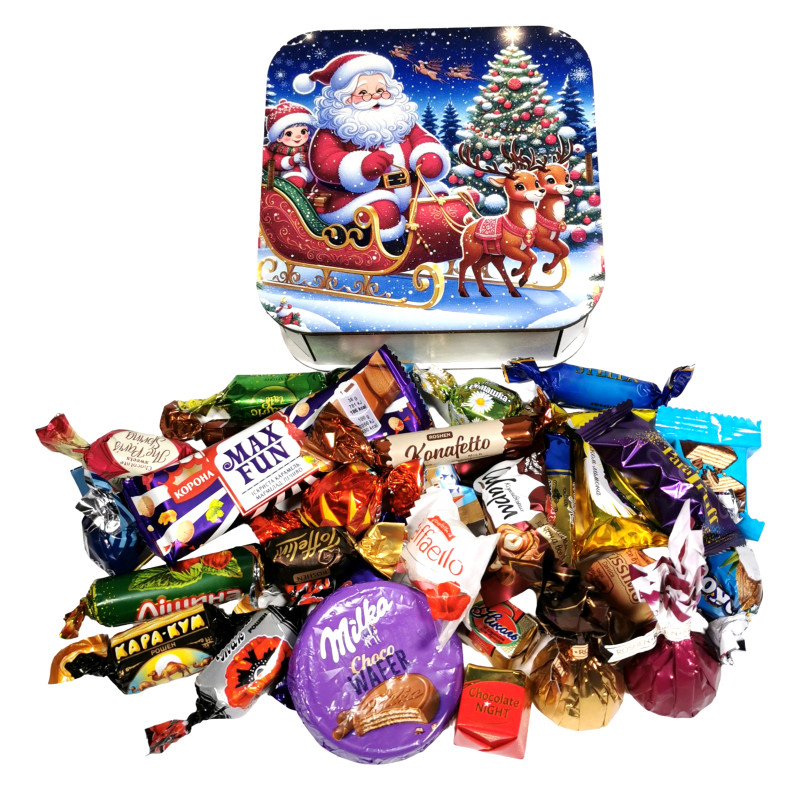 "Мон Блан з цілим лісовим горіхом" Рошен, "Мон Блан" з подр. мигдалем Рошен, "Червоний мак" Рошен, "Konafetto" Рошен, "Кара-Кум" Рошен, "Ліщина" Рошен, "Королівський шарм Фундук" АВК, "Труфальє" АВК, "Шоколадна ніч" молочна АВК, "Диво Коконат" Аметист, "Прометей з родзинками" Аметист, "Пташине молоко" зі смаком лимону Бісквітка, "Belissimo" Classico KONTI, "Ромашка" Бісквітка, "Чарівна казка" Бісквітка, "Паратруфель" Golski, "Stella" Бісквітка, "Ля крема" Бісквітка, "Ніколь крем брюле" Бісквітка, "Ніколь" Бісквітка, "Паризька весна" Бісквітка, "Johnny Krocker" coconut Рошен, "Гулівер" міні вафля АВК, "Toffelini" Рошен, "Raffaello", "Choco Wafer" Міlkа 30 г, "MAX FUN" батончик Корона 38 г.