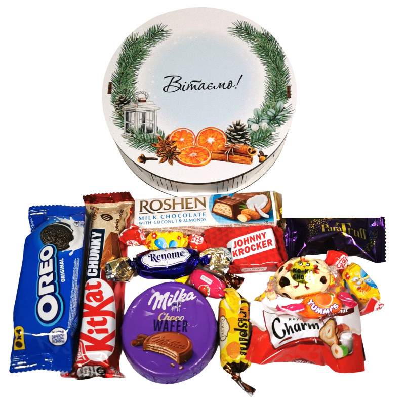"Коко чоко White" Рошен, "Royal Charm фундук" АВК, "Паратруфель" Golski, "Crispini" Golski, "Реноме" Бісквітка, "Johnny Krocker" Рошен, "Батон" помадно-шоколадний Рошен, "Yummi's" тоффі Рошен, "Шалена бджілка" Рошен, "КІТКАТ chunky" мол. Нестле, "Choco Wafer" Міlkа 30 г, "Печиво OREO" 38 г.