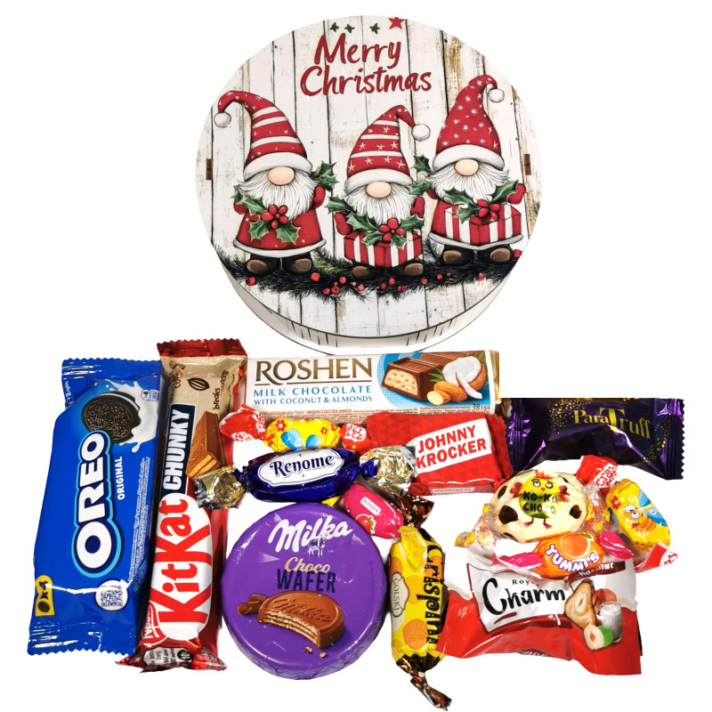 "Коко чоко White" Рошен, "Royal Charm фундук" АВК, "Паратруфель" Golski, "Crispini" Golski, "Реноме" Бісквітка, "Johnny Krocker" Рошен, "Батон" помадно-шоколадний Рошен, "Yummi's" тоффі Рошен, "Шалена бджілка" Рошен, "КІТКАТ chunky" мол. Нестле, "Choco Wafer" Міlkа 30 г, "Печиво OREO" 38 г.