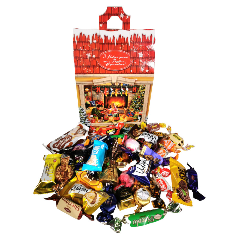 | Вміст подарунку | Шоколадний, іриски |