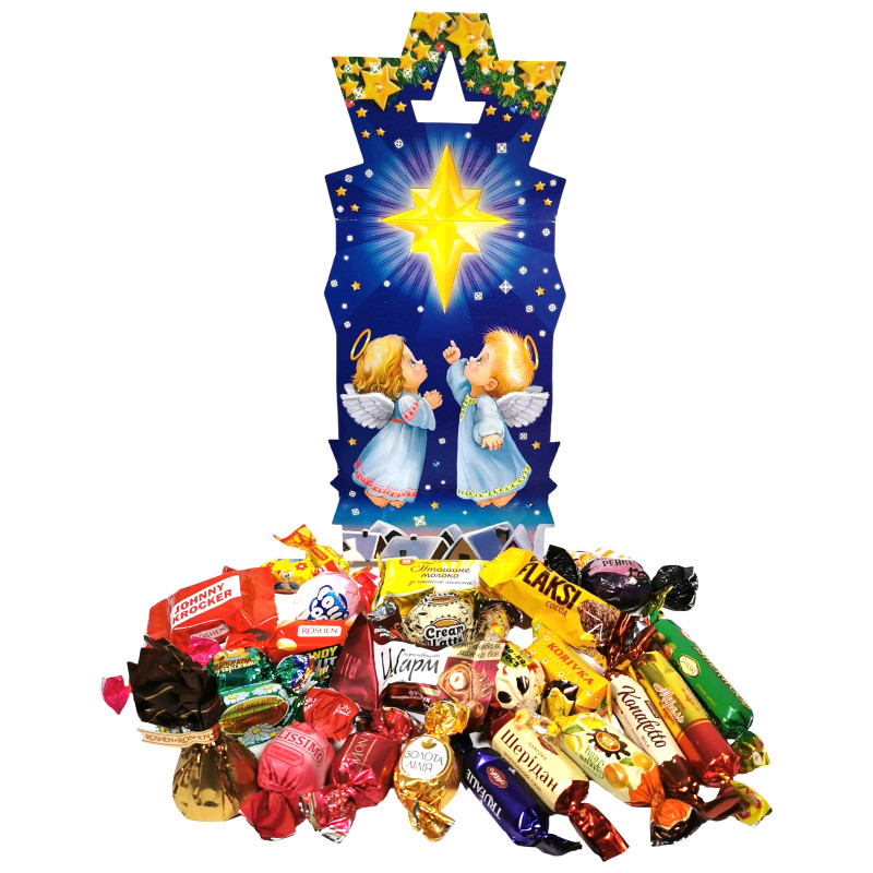 "Мон Блан з цілим лісовим горіхом" Рошен, "Королівський шарм Фундук" АВК, "Konafetto" Рошен, "Коко чоко White" Рошен, "Труфальє" АВК, "Mone" чорний трюфель KONTI, "Золота лілія" KONTI, "Перлина Каракума" Аметист, "Кенді нат карам.+арахіс" Рошен, "Пташине молоко" зі смаком лимону Бісквітка, "Flaksi cocoa" Рошен, "Belissimo" полуниця з вершками KONTI, "Ромашка" Бісквітка, "Шерідан" АВК, "Ведмежатко" з горіхом KONTI, "Шервуд" Golski, "Кремлате" Бісквітка, "Мірель" Бісквітка, "Желейка цитрус" Бісквітка, "Johnny Krocker" Рошен, "Minky-Binky" Рошен, "Yummi's" тоффі Рошен, "Еклер" Рошен, "Корівка" Рошен, "Лоллі попс" Рошен, "Шалена бджілка" Рошен.